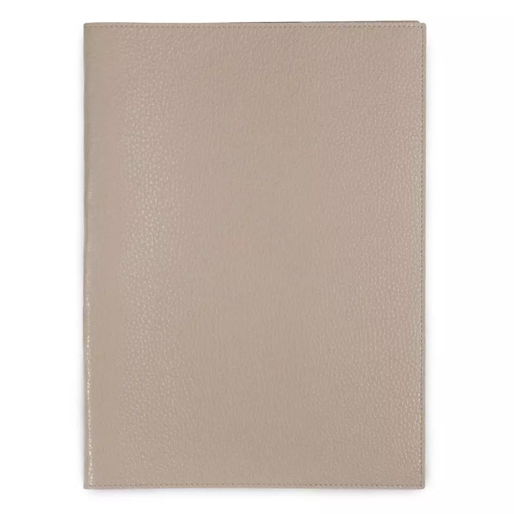 Dieser edle Buchumschlag im A4-Format ist Schutzhülle und Designobjekt in einem. Das pflanzlich gegerbte, robuste Leder mit leicht geprägter Oberfläche besitzt eine angenehme, weiche Haptik, schmiegt sich perfekt an Ihr Notizbuch oder Ihren Kalender an und schützt somit optimal vor äußeren Einflüssen und Knicken. Als nachhaltige Alternative zum festgebundenen Leder-Notizbuch lässt sich das Innenleben beliebig oft austauschen und die Buchhülle entwickelt im Laufe der Jahre eine charaktervolle Patina. Die schlichte Optik wird durch schwarzes Glattleder im Innenbereich sowie eine umlaufende, Ton in Ton gehaltene Ziernaht abgerundet. Das Leder wird offenkantig verarbeitet. Format: 22,0 x 31,0 cm.