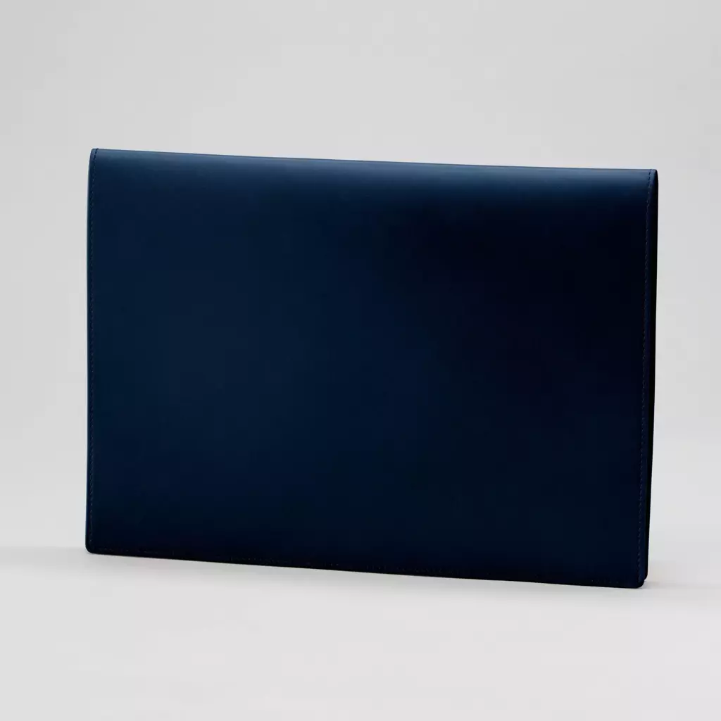 Leichte und flexible Dokumentenmappe aus weichem italienischen Rindvollleder mit großer Kuverttasche für alle Unterlagen im Format bis A4. Die Lederklappe schützt den Inhalt und gibt gleichzeitig festen Halt. Innenfutter aus dunkelblauer Viskose. 24 x 34 cm.