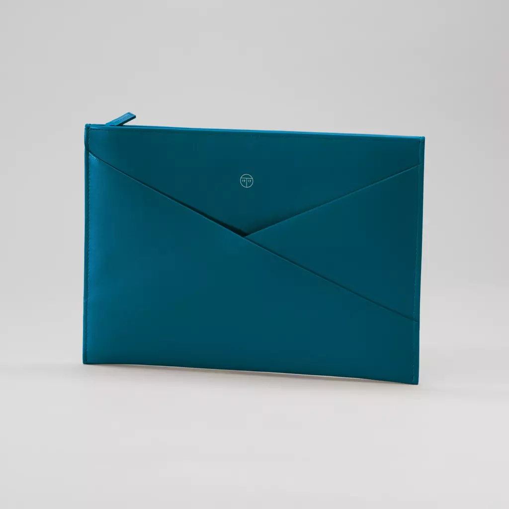 Wallaby ist ein stilsicherer Begleiter – groß genug, um mindestens ein Tablet aufzubewahren und klein genug, um unter dem Arm getragen zu werden. Die Tasche verwahrt nicht nur persönliche Accessoires und elektronische Helfer, sie lässt sich mit dem farblich abgestimmten Zipper auch sicher schließen. Wichtige Dokumente, der Ausweis oder das Flugticket lassen sich – mit nur einem Handgriff – der unverwechselbaren Treuleben Kuverttasche entnehmen. Handgefertigt aus feinstem Rindsleder und blauem Innenfutter. 29,5 x 20,5 cm.