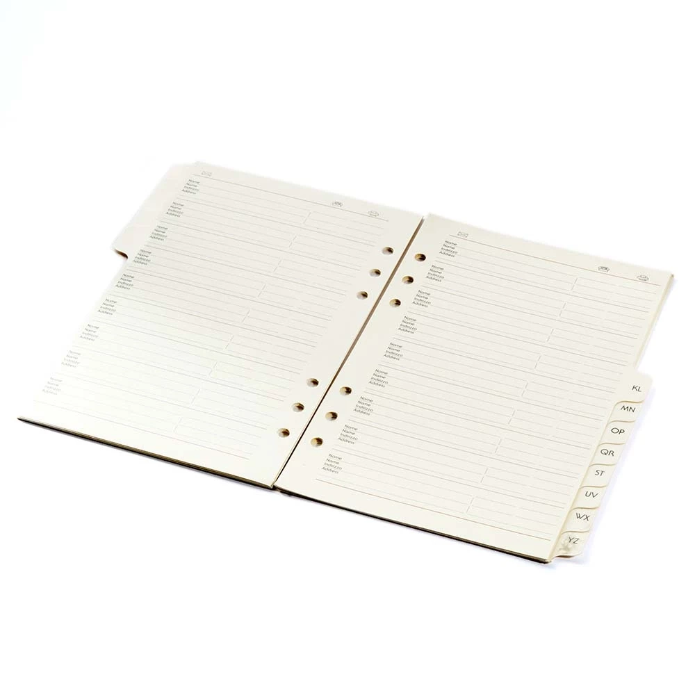 Das alphabetisch von A-Z sortierte Refill für unseren SY System Planer umfasst ein Adress- und ein Telefonregister. Die einzelnen Blätter sind in Creme gehalten und besitzen eine Standardlochung. So können die Ersatzblätter nicht nur für die System Planer von Bethge verwendet werden, sondern sind auch Filofax-kompatibel für entsprechend große Planer mit den Maßen14,0 x 21,5 cm.