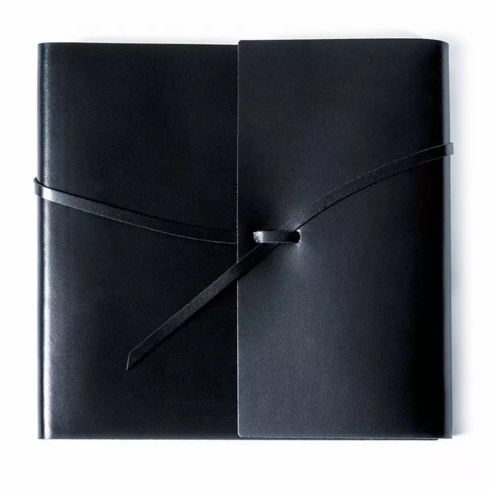 Gästebuch mit Band, 96 Blatt, Leder, 21x21 cm, Dunkelblau