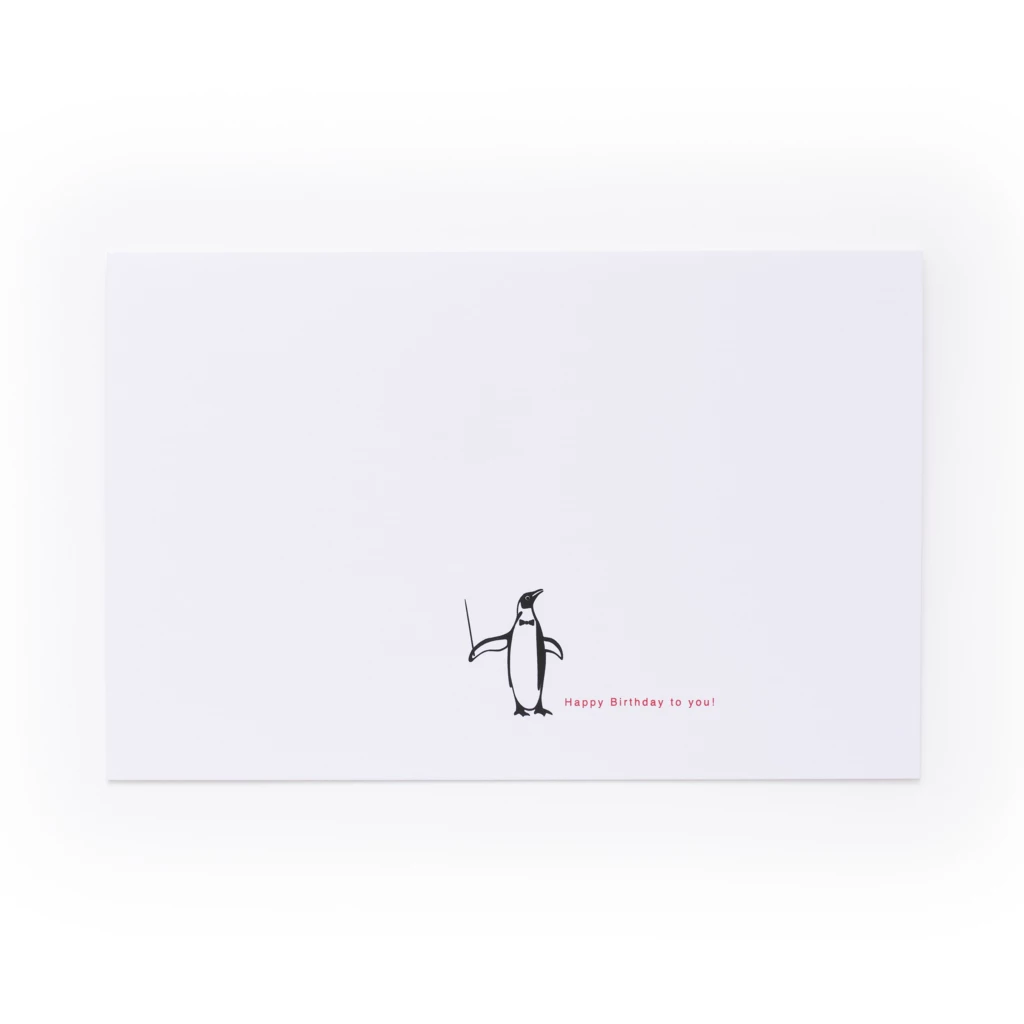 Ein Ständchen zum Geburtstag. Der kleine Pinguin, fein angezogen macht sich gut als Dirigent. Klappkarte, handbedruckt im Siebdruck. Passender Umschlag mit Seidenfutter.