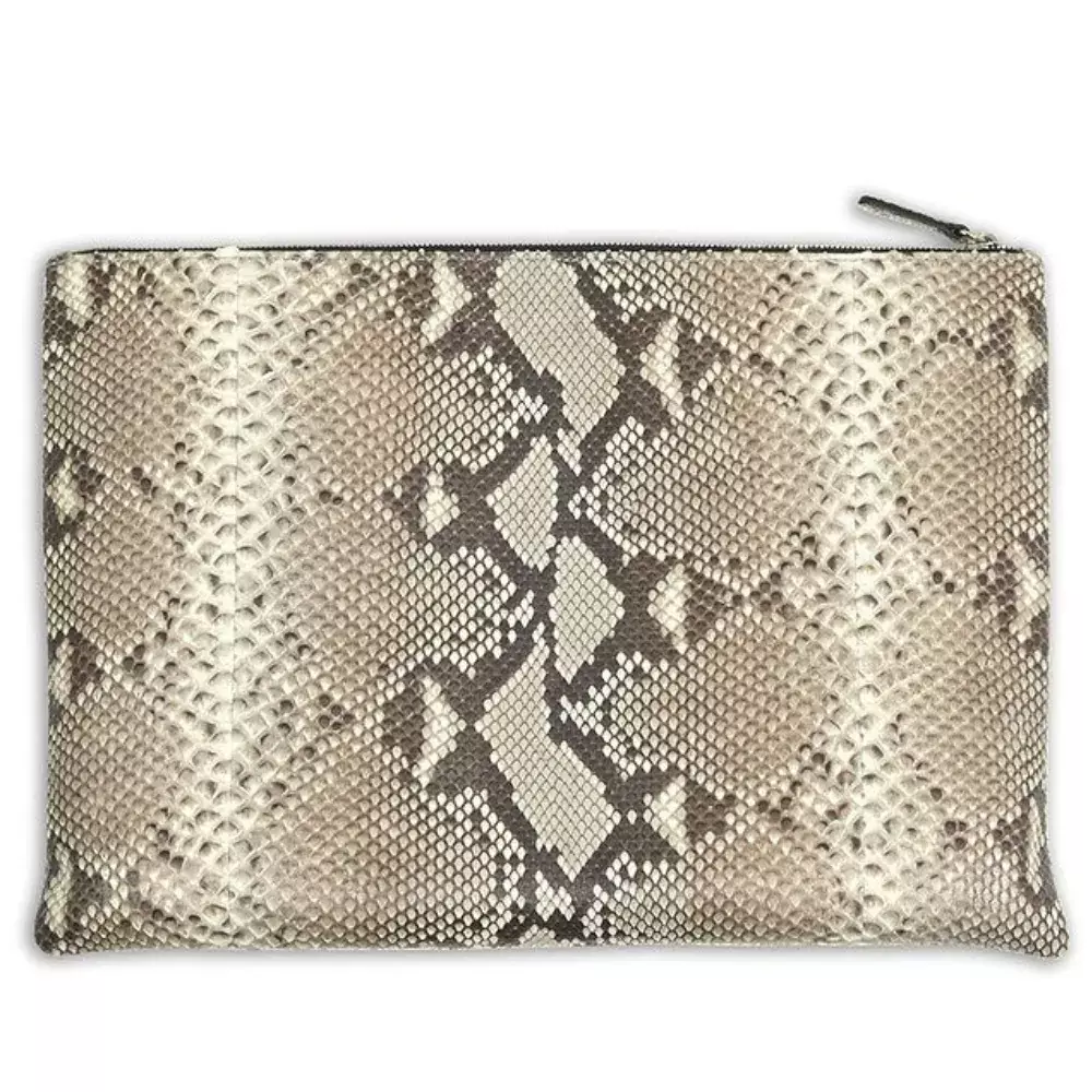 Leder Pouch Groß mit Reißverschluss Pythonoptik Schwarz-Weiß