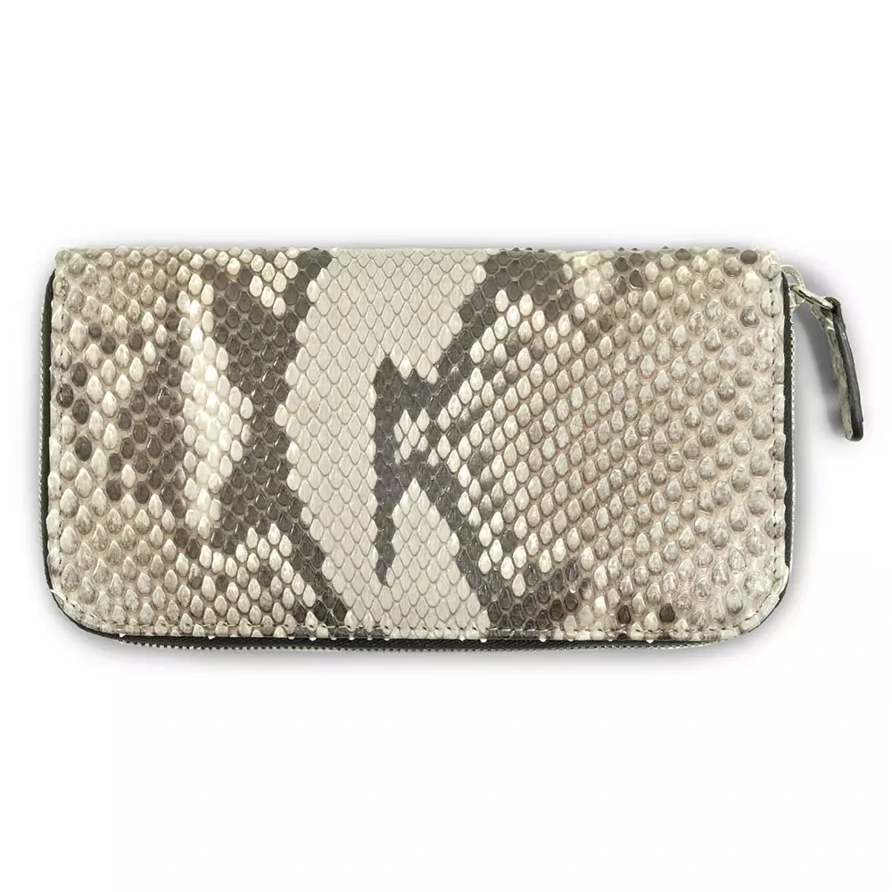 5. Großes Portemonnaie mit Zip, Pythonleder, Schwarz-Weiß