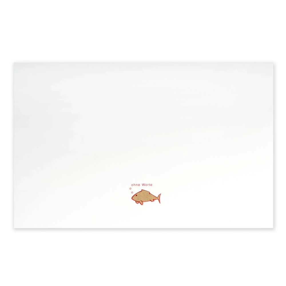 Da fällt sogar dem Fisch nichts mehr ein. Lustige Grußkarte im Klappstilformat mit viel Platz für eigene Worte. Handbedruckt im Siebdruck. Passender Umschlag mit weißem Seidenfutter.