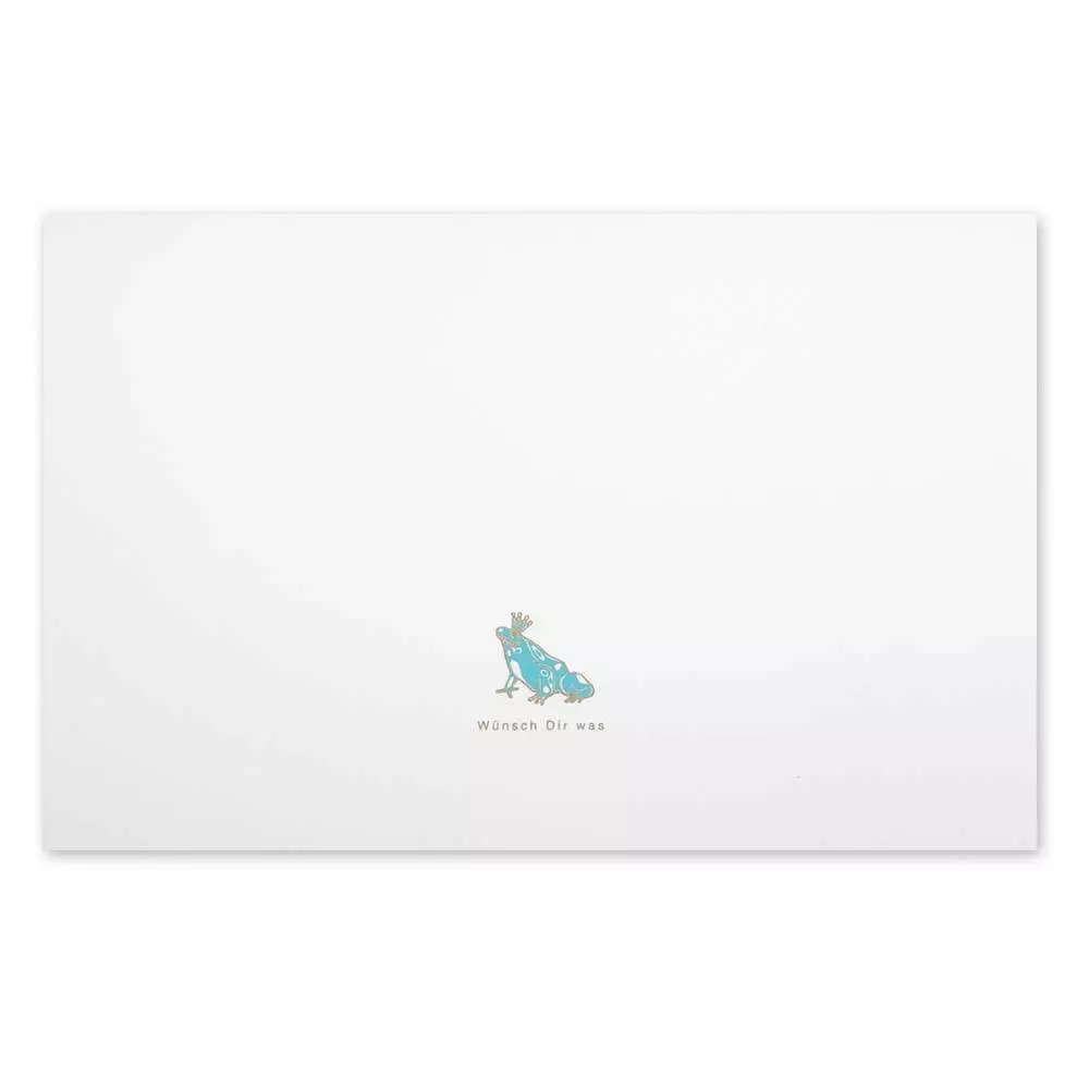 Frosch oder Prinz? Mit dieser Karte im Format 17 x 11 cm werden Wünsche wahr. Klappkarte, handbedruckt im Siebdruckverfahren. Mit passendem Umschlag, gefüttert.