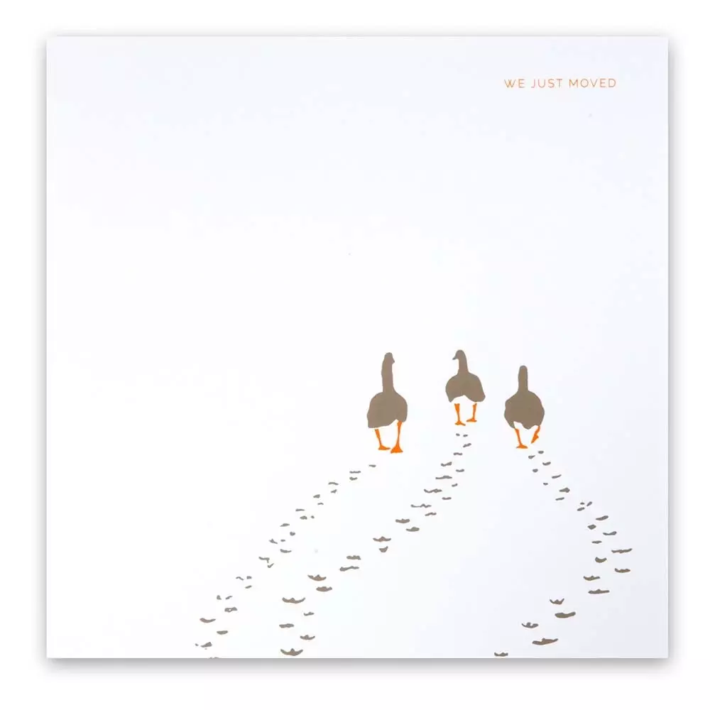 Die "We just moved"-Version unserer Gänsekarte ist die charmante Art, Freunde, Familie oder Geschäftspartner vom Umzug zu informieren. Sie wird in unserer Siebdruckmanufaktur am Hamburger Fischmarkt von Hand gedruckt und mit einem gefütterten Umschlag geliefert. Format 15,8x15,8 cm.