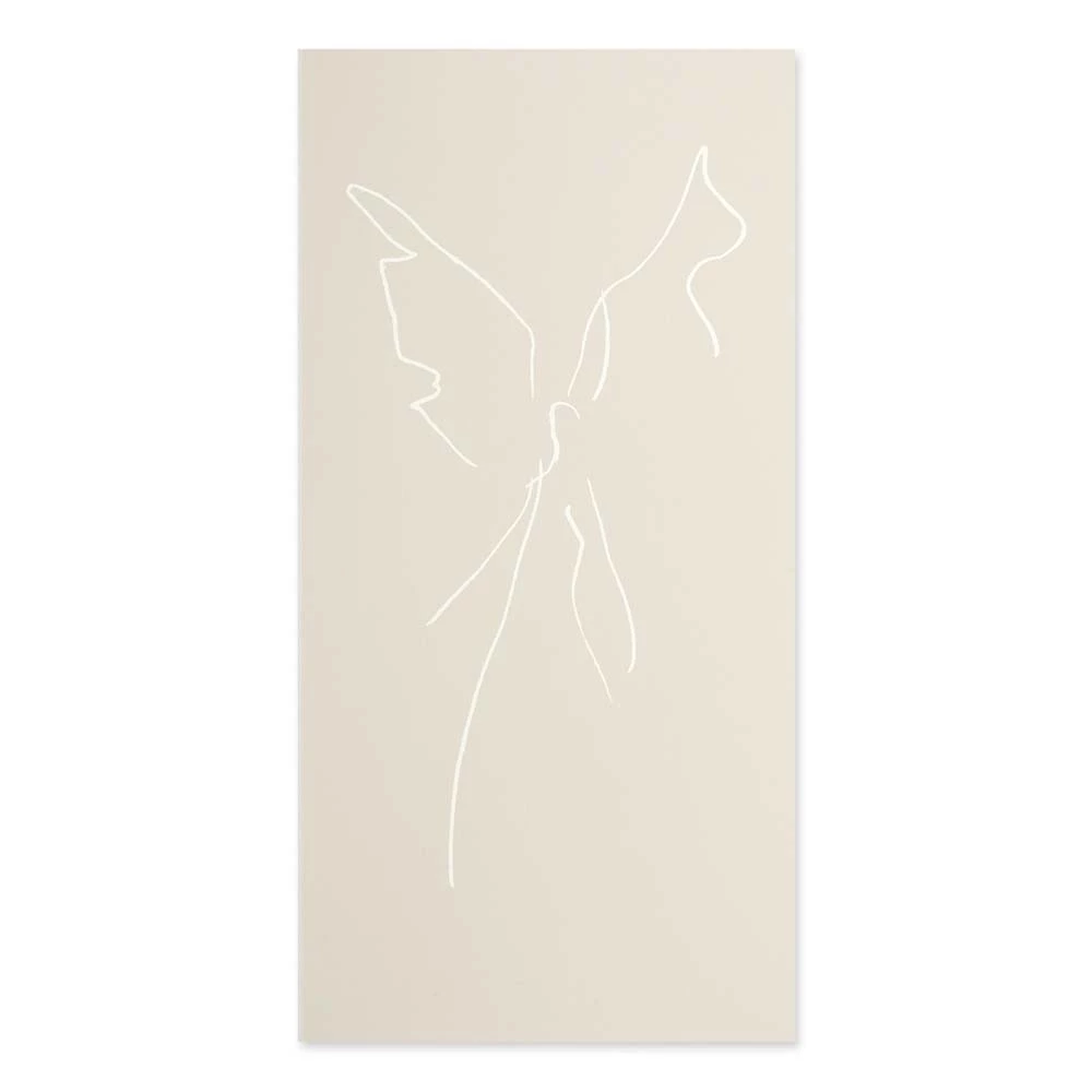 Diesen Engel schickt der Himmel! Ganz in Weiß mit feinem Strich auf unserem Lieblingsmaterial Pure Sand. Mit passendem Umschlag, ohne Seidenfutter.