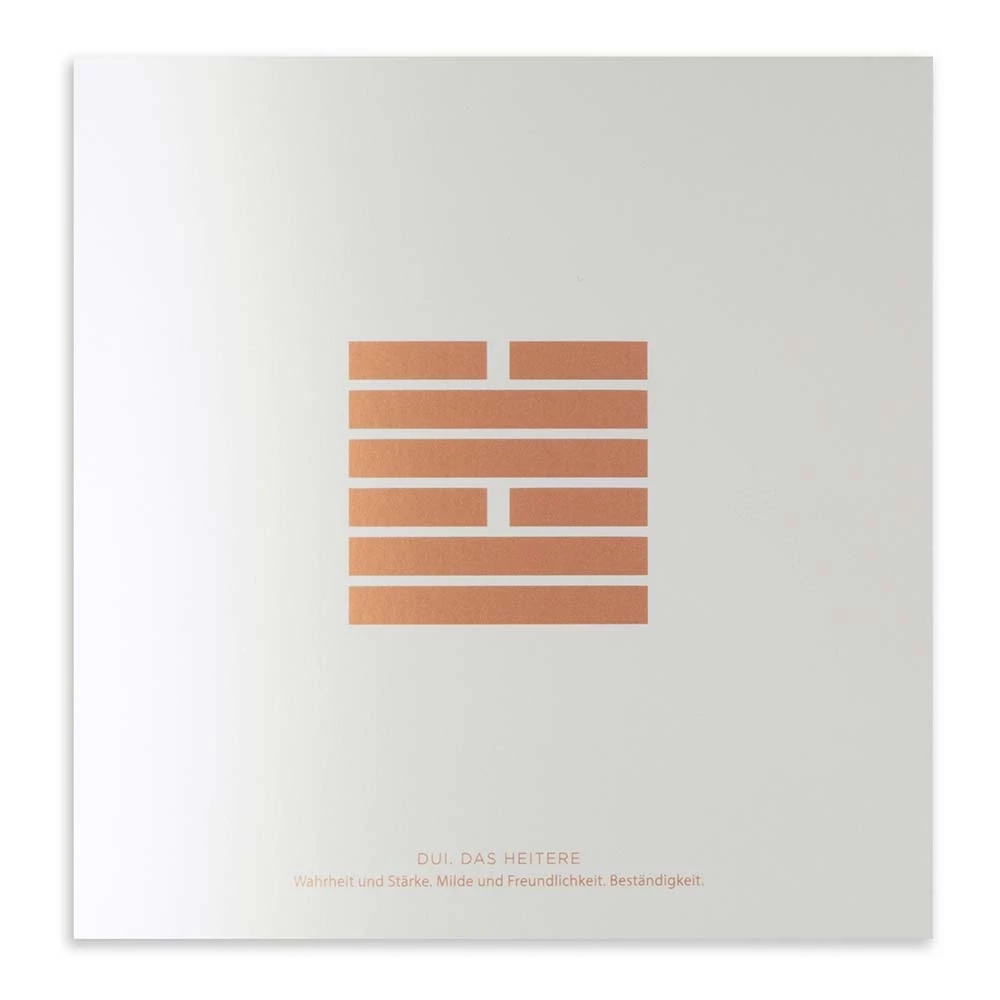 Das I Ging besteht aus 64 Figuren, den Hexagrammen. Jedes von ihnen setzt sich wiederum aus zwei Trigrammen (Dreierzeichen) zusammen: Sie symbolisieren jeweils Energien und Naturkräfte, Qualitäten und Zustände. Das untere Trigramm steht für den inneren Aspekt der Veränderung, das obere für den äußeren. In ihrem Zusammenspiel beschreiben sie den Menschen (unten) in seiner Situation und der Welt (oben). Lassen Sie sich inspirieren.