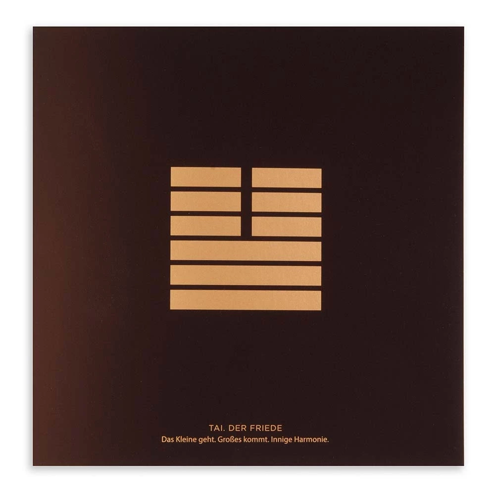 Das I Ging besteht aus 64 Figuren, den Hexagrammen. Jedes von ihnen setzt sich wiederum aus zwei Trigrammen (Dreierzeichen) zusammen: Sie symbolisieren jeweils Energien und Naturkräfte, Qualitäten und Zustände. Das untere Trigramm steht für den inneren Aspekt der Veränderung, das obere für den äußeren. In ihrem Zusammenspiel beschreiben sie den Menschen (unten) in seiner Situation und der Welt (oben). Lassen Sie sich inspirieren.