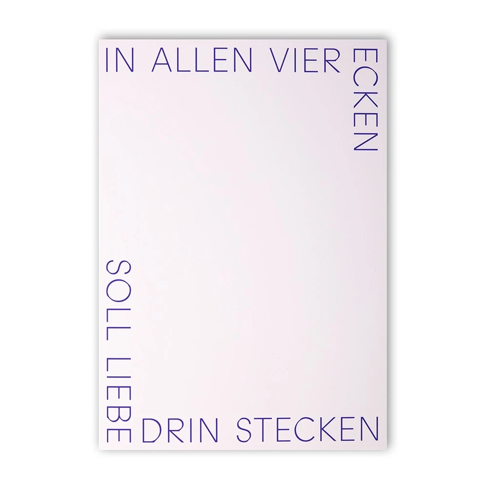 Ganz gemäß dem aufgedruckten Motto ist diese Karte wie gemacht für Ihre persönliche Liebeserklärung an einen ganz besonderen Menschen. Das edle, zart rosafarbene Feinpapier von Gmund mit hoher Grammatur wird in unserer Siebdruck-Manufaktur einzeln von Hand bedruckt und wartet nur darauf, von Ecke zu Ecke von Ihnen beschrieben zu werden, denn: „In allen vier Ecken soll Liebe drin stecken".