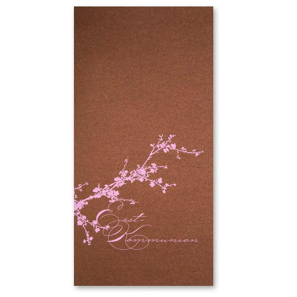 Grußkarte zur Erstkommunion mit Kirschblütenmotiv in rosa. Karte Din lang mit weißem Einleger und Umschlag mit weißem Seidenfutter.