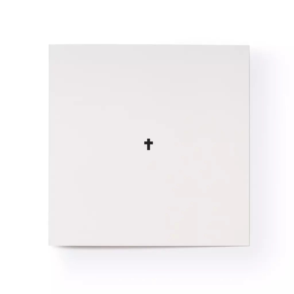 Edle Trauerkarte im modernen Format mit dezentem Kreuz. Handbedruckt im Siebdruck. Mit schwarzem Umschlag, ohne Futter.