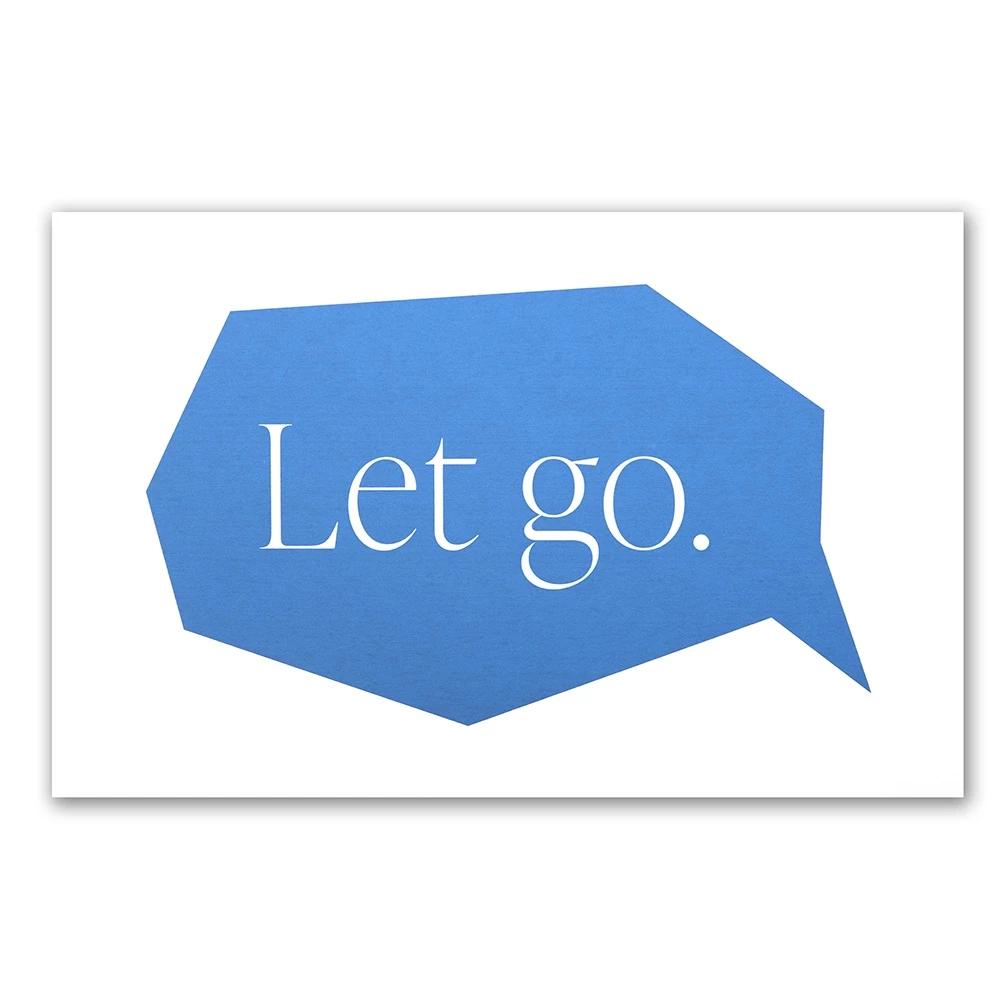 Die knallige Sprechblase in sattem Blau mit Statement-Spruch "Let go.