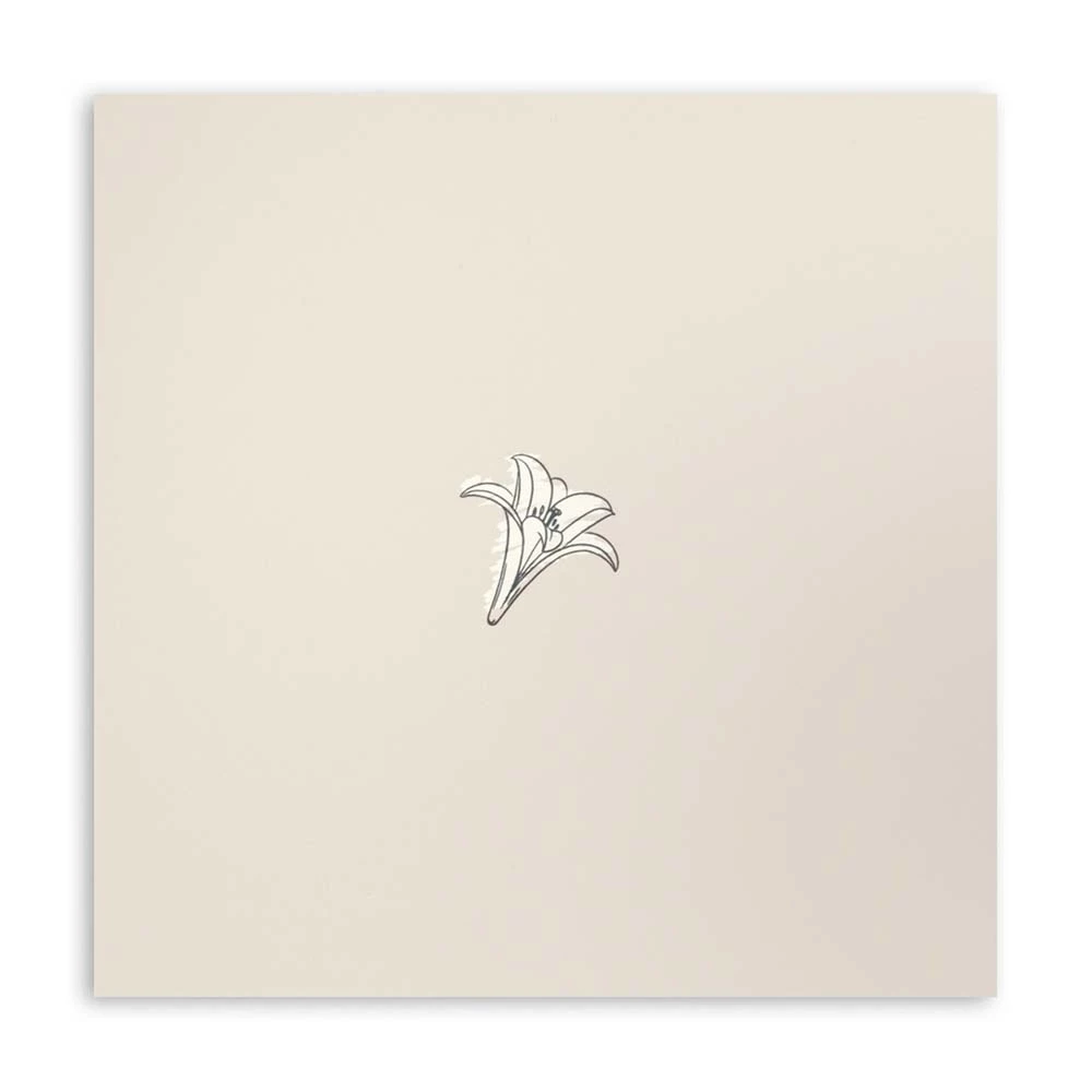 Blumeneleganz. Quadratische Klappkarte mit wunderschönem Lilienmotiv auf pure sand Papier. Handbedruckt und mit passendem Umschlag mit Seidenfutter.