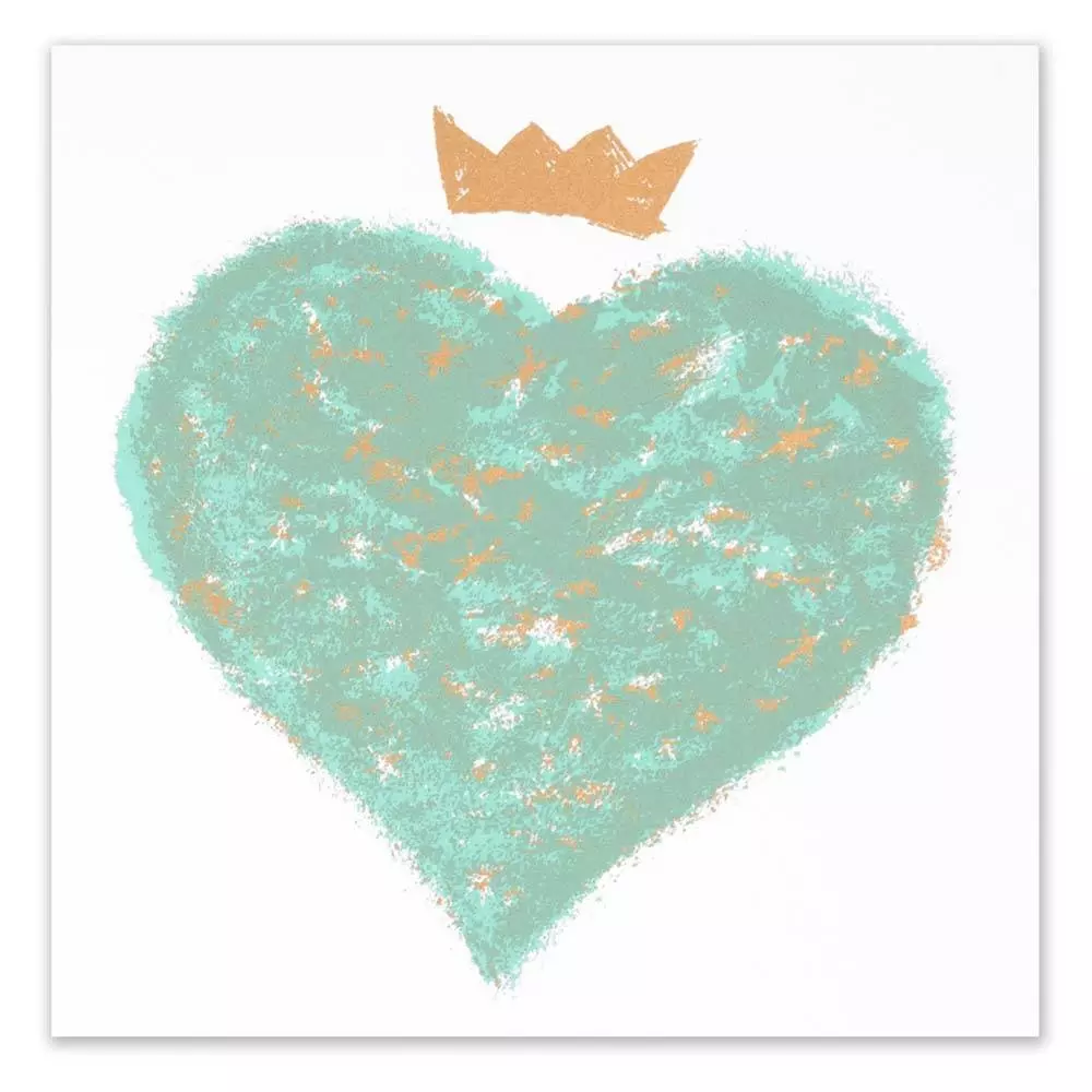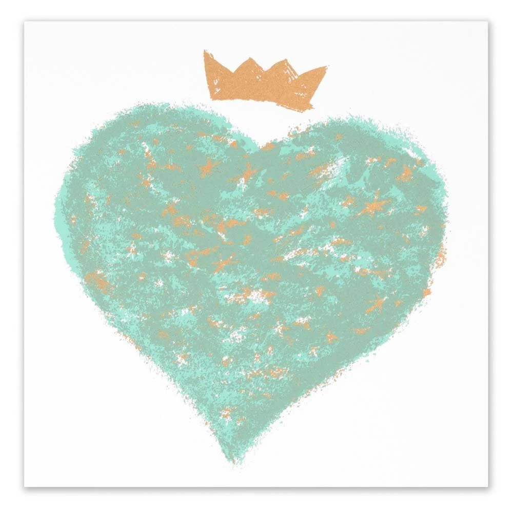 Die Krönung aller Herzen. Romantische Grußkarte handbedruckt im Siebdruckverfahren in zartem Grün mit prunkvollem Gold. Weißer Umschlag mit weißem Seidenfutter.