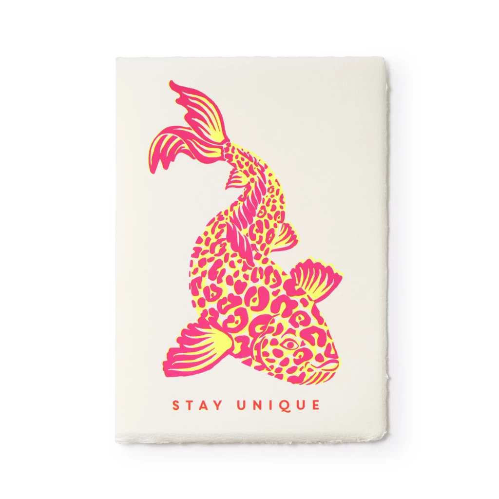 Es gibt Menschen, die man nicht mit einer gewöhnlichen Karte grüßt. Die einen Blick für das Besondere haben, die Konventionen kennen und sie bewusst ignorieren. Für genau diese Menschen ist diese Karte gemacht. Sie verschicken sie, weil Sie wissen, dass der erste Eindruck zählt, und weil ein Fischmotiv im Leopardenmuster genau das sagt, was kein Standardgruß je ausdrücken könnte: Du bist einzigartig. Bleib so.