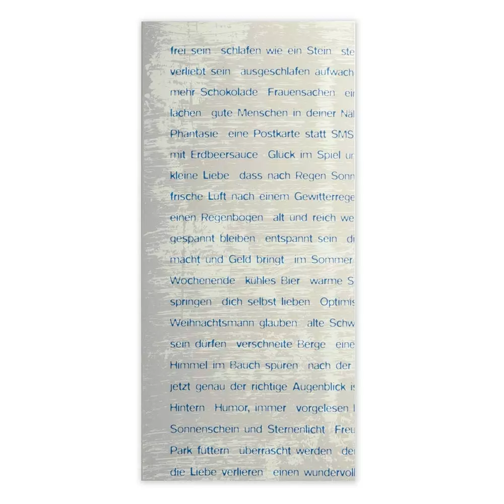 Als Grußkarte, als Poster oder beides kann die Karte "Wishes" verschenkt werden. Das farblich abgestimmte Kuvert passt perfekt um das Poster im gefalteten Zustand – so wird das Poster zur Grußkarte. Hier stehen die schönsten Bethge-Wünsche wie "im Kino bis zum Abspann wachbleiben", "niemals in die zweite Liga absteigen" oder einfach "verliebt sein" aneinandergereiht. Die passenden Wünsche können nun selbst – am besten mit Neonfarben – markiert werden. Auf diese wird der Beschenkte nun besonders achten. Und weil die Grußkarte im Posterformat so schön ist, findest sie bestimmt einen einzigartigen Platz in der Wohnung. Dann werden die Wünsche garantiert nie vergessen.