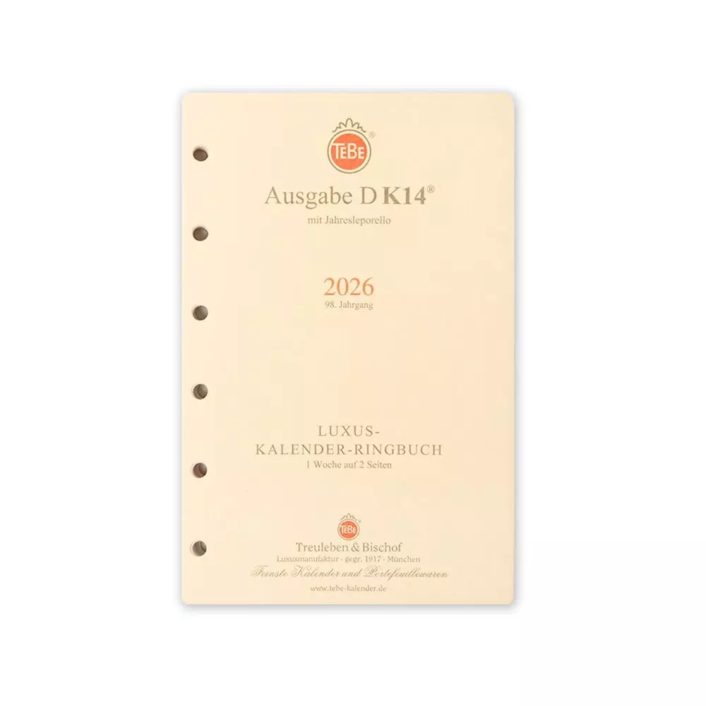 Die praktischen Kalender-Refills in verschiedenen Ausführungen und Formaten passen perfekt in die TeBe Luxus-Organizer und bieten optimale Voraussetzungen für einen gut organisierten Start in das neue Jahr. Alle Kalendereinlagen enthalten neben einer Jahresübersicht für 2026 und 2027 auch eine Feiertagsübersicht sowie weitere, tolle Features.