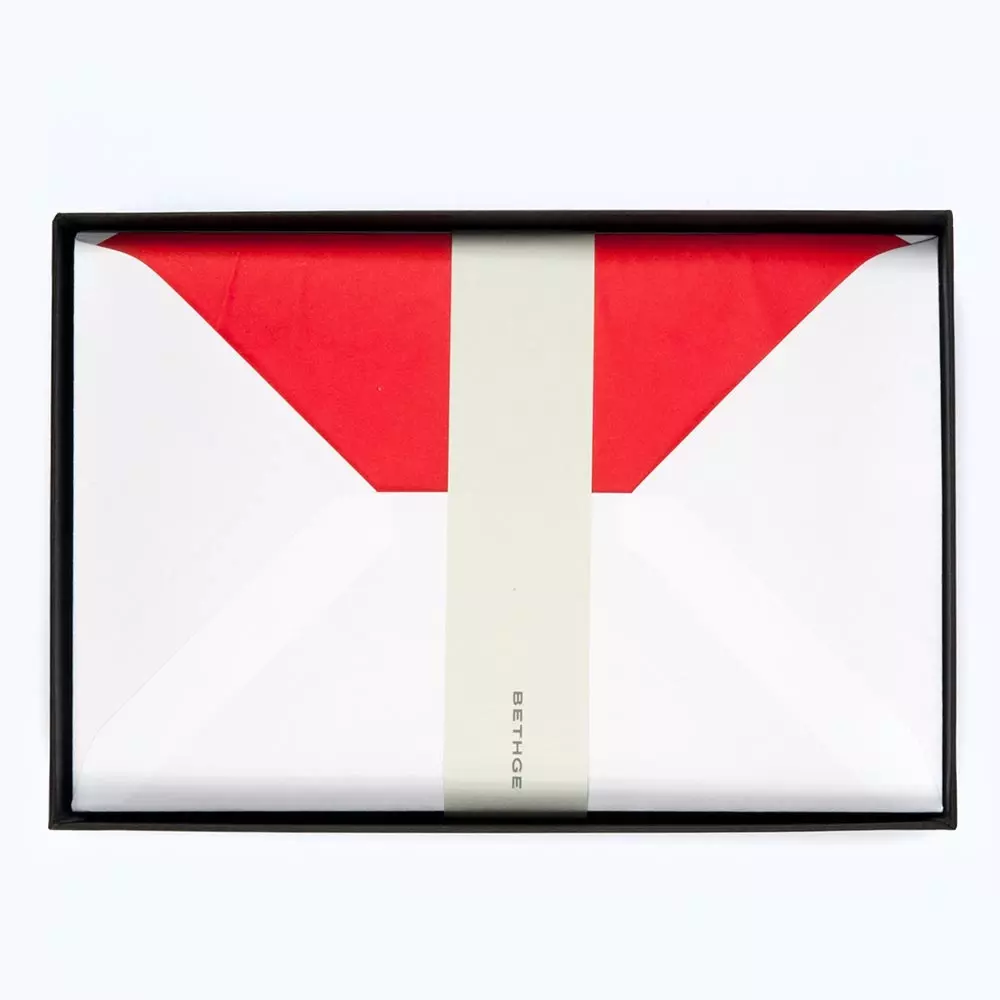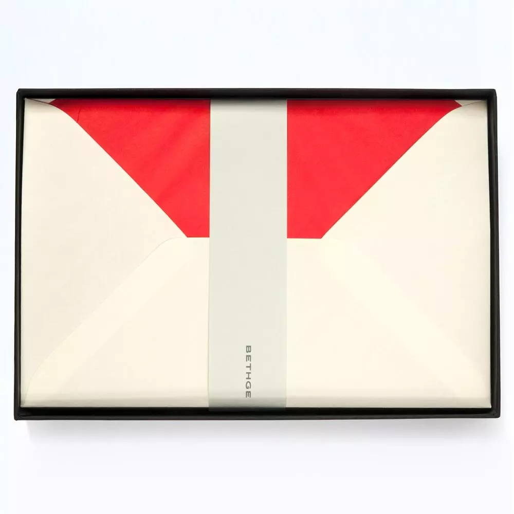 25 Umschläge Diplomat, Smooth Ivory, rotes Seidenfutter