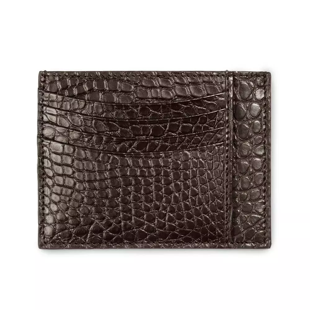 Kartenetui flach, 8 cc, Alligatorleder, Dunkelbraun