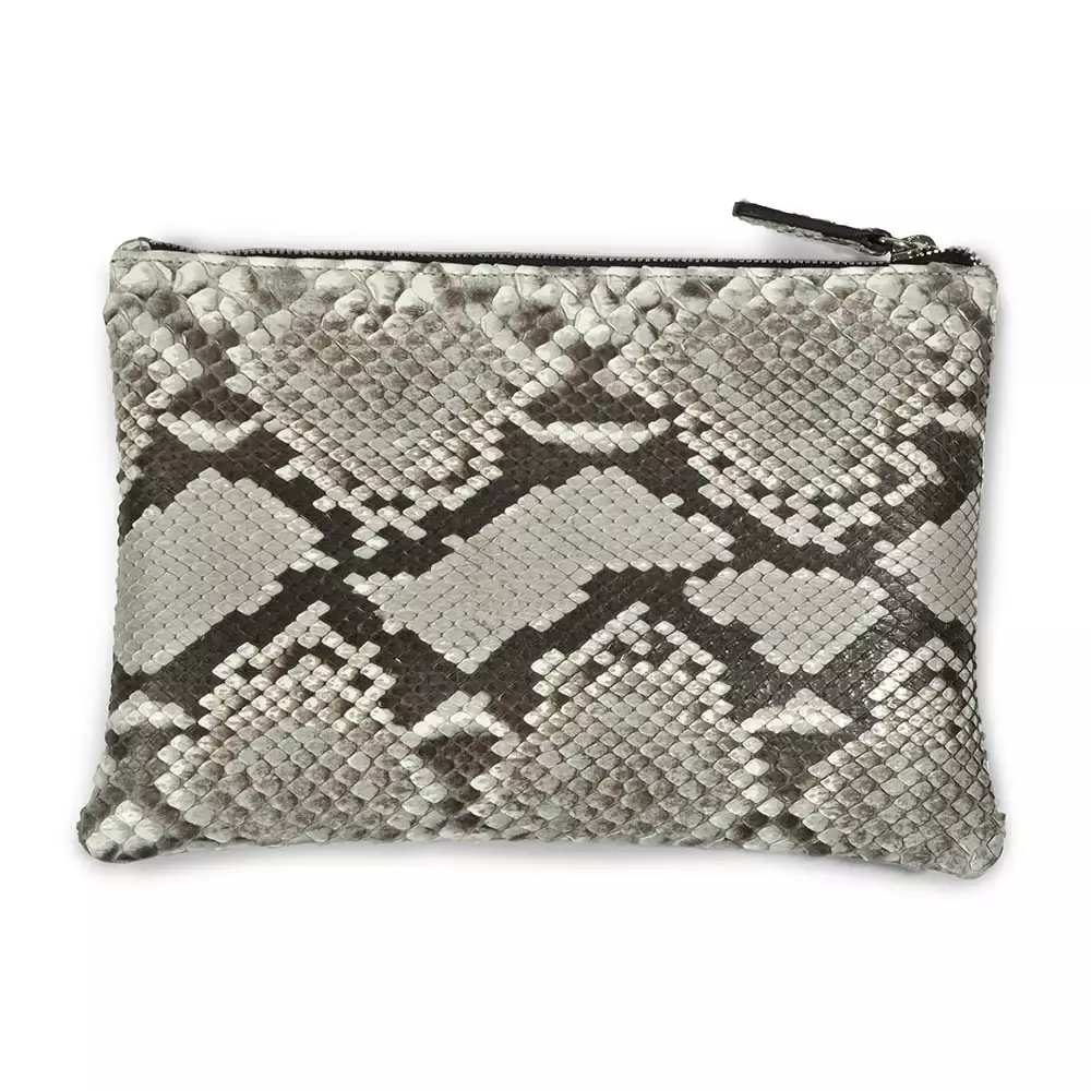 Leder Pouch Klein mit Reißverschluss Pythonoptik Schwarz-Weiß