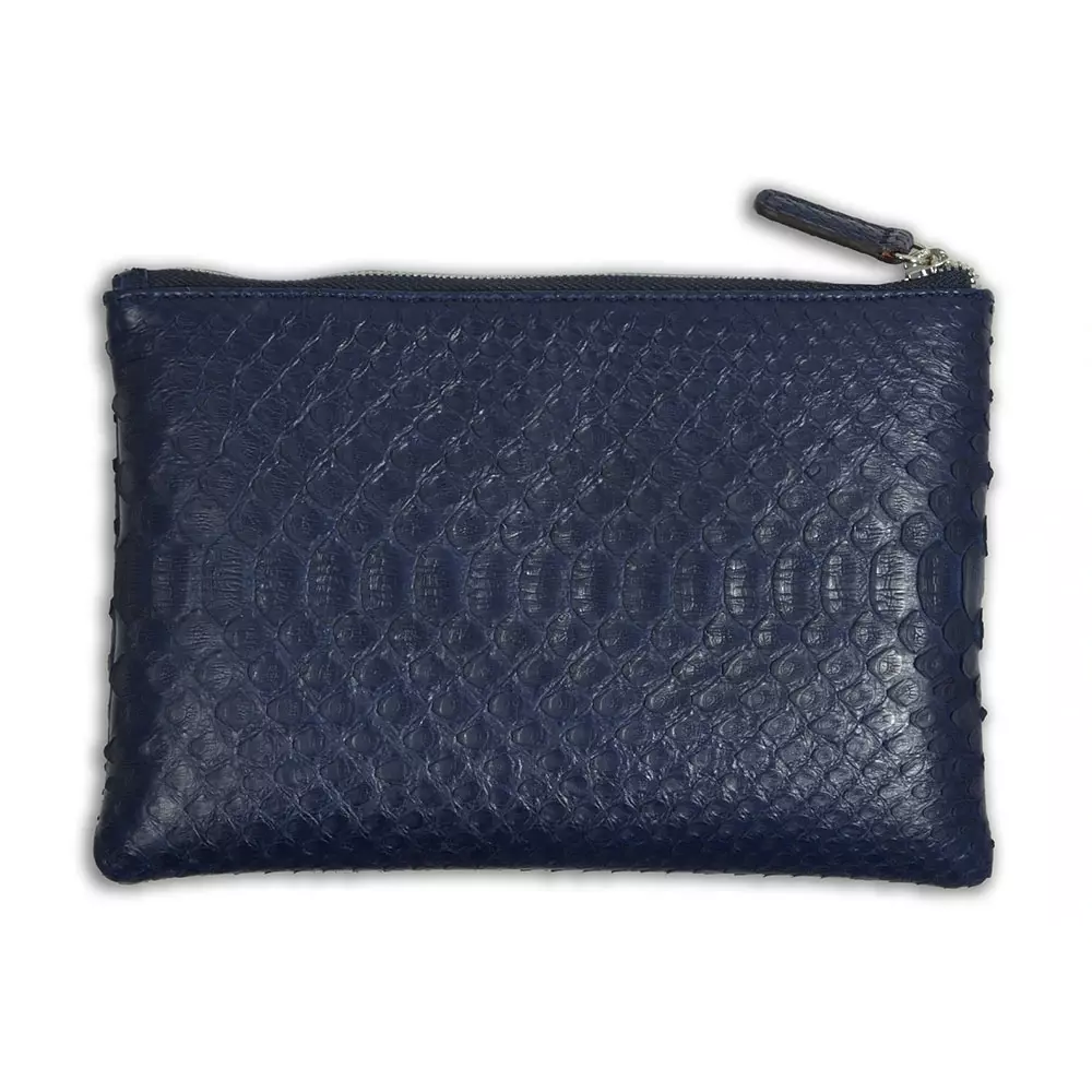 Kleine Leder Pouch mit Zip aus Pythonleder in Blau