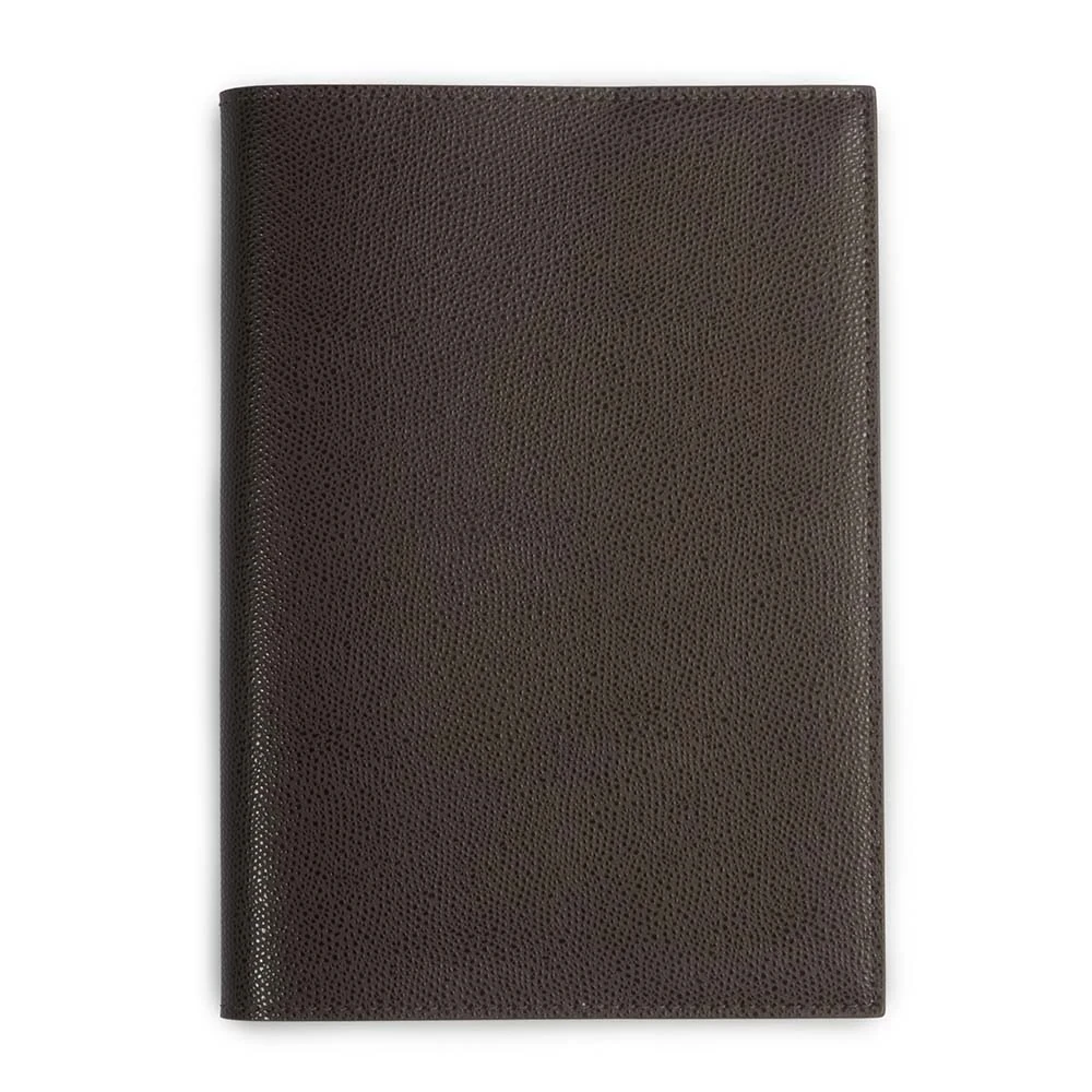 Ob unterwegs auf Reisen, auf dem Schreibtisch oder Zuhause – umhüllt mit einem Einband aus Leder wirken Notizbuch und Kalender stets elegant. Dieser Buchumschlag im A5-Format ist Schutzhülle und Designobjekt in einem. Das pflanzlich gegerbte Rindsleder besitzt eine geprägte Oberfläche, schmiegt sich perfekt an Ihr Notizbuch oder Ihren Kalender an und schützt somit optimal vor äußeren Einflüssen und Knicken. Das Leder schimmert leicht und ist besonders fest und robust. Als nachhaltige Alternative zum festgebundenen Leder-Notizbuch lässt sich das Innenleben beliebig oft austauschen und die Buchhülle entwickelt im Laufe der Jahre eine charaktervolle Patina. Die schlichte Optik wird durch schwarzes Glattleder im Innenbereich sowie eine umlaufende, Ton in Ton gehaltene Ziernaht abgerundet. Format: 16,0 x 22,0 cm.