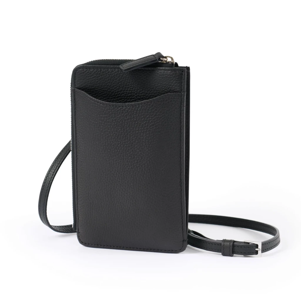 Wenn nur das Wesentliche mitkommt, darf die Form ruhig schlank bleiben. Die Crossbody Tasche Adri trägt Telefon, Karten, Bargeld und Schlüssel nah am Körper – übersichtlich und schnell greifbar. Die Crossbody Tasche verfügt über ein Fach vorne, damit das Smartphone schnell greifbar bleibt. Zusätzlich gibt es ein Reisverschlussfach für weitere Wertgegenstände. Innen ordnen Fächer Ihr Bargeld und Ihre Karten. Ein Karabiner sichert Ihren Schlüssel vor Verlust. Die Tasche ist aus feingenarbtem Rindsleder gefertigt. Der Riemen lässt sich stufenlos anpassen, ob quer oder hoch getragen.