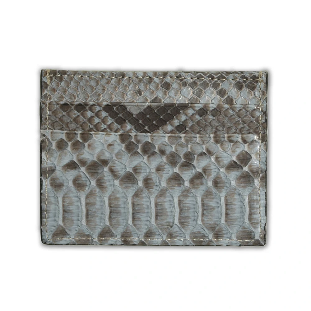 Dieses besonders kompakte Kartenetui wird in traditioneller Handarbeit in Italien gefertigt und bietet in jeweils zwei Kartenfächern auf Vorder- und Rückseite sowie einem Mittelfach Platz für Karten, Geldscheine und Belege. Das verwendete Pythonleder ist besonders widerstandsfähig und für seine exklusive Optik beliebt. Die spürbaren Hautschuppen sorgen für eine einzigartige Haptik und besitzen bei jedem Kartenhalter eine ganz individuelle Maserung, Größe und Anordnung. Das Innenfach ist mit gleichfarbigem Glattleder ausgekleidet und mit einer dezenten Bethge-Prägung in Silber versehen. Die Kartenfächer sind mit schwarzem Polyestergewebe ausgekleidet.