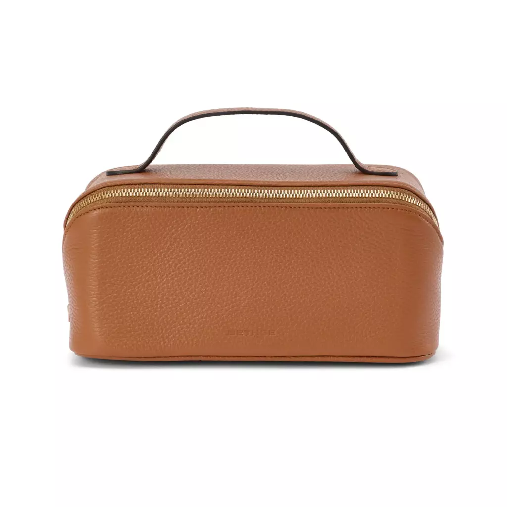 Diese hochwertige Kosmetiktasche ist ein treuer Reisebegleiter und eine stilvolle Ergänzung für Ihre Reisegarderobe. Der geräumige Innenbereich ist mittig durch ein Reißverschlussfach unterteilt und an beiden Seiten mit praktischen Einschubfächern ausgestattet. Hier lassen sich alle Essentials unterbringen, die man auf Reisen nicht missen möchte. Das glatte Innenfutter ist angenehm weich und schont den Inhalt. Durch den diagonal verlaufenden äußeren Reißverschluss kann die Kosmetiktasche vollständig geöffnet werden und sie liegt flach auf, was einen sicheren Stand und eine komfortable Entnahme des Inhalts ermöglicht. Der unifarbene Look verleiht Ihrem Badezimmer eine besondere, ästhetische Note und ist zudem äußerst robust. Mit dem Gebrauch entwickelt das Leder eine individuelle Patina und gewinnt so zusätzlich an Charakter. Die Kanten des Leders werden von Hand mit schwarzer Farbe versiegelt.