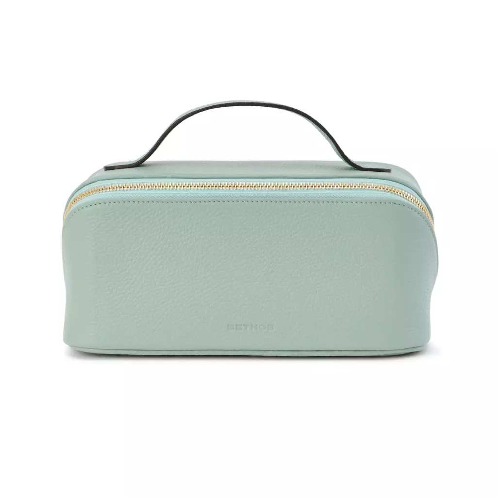 Diese hochwertige Kosmetiktasche ist ein treuer Reisebegleiter und eine stilvolle Ergänzung für Ihre Reisegarderobe. Der geräumige Innenbereich ist mittig durch ein Reißverschlussfach unterteilt und an beiden Seiten mit praktischen Einschubfächern ausgestattet. Hier lassen sich alle Essentials unterbringen, die man auf Reisen nicht missen möchte. Das glatte Innenfutter ist angenehm weich und schont den Inhalt. Durch den diagonal verlaufenden äußeren Reißverschluss kann die Kosmetiktasche vollständig geöffnet werden und sie liegt flach auf, was einen sicheren Stand und eine komfortable Entnahme des Inhalts ermöglicht. Der unifarbene Look verleiht Ihrem Badezimmer eine besondere, ästhetische Note und ist zudem äußerst robust. Mit dem Gebrauch entwickelt das Leder eine individuelle Patina und gewinnt so zusätzlich an Charakter. Die Kanten des Leders werden von Hand mit schwarzer Farbe versiegelt.