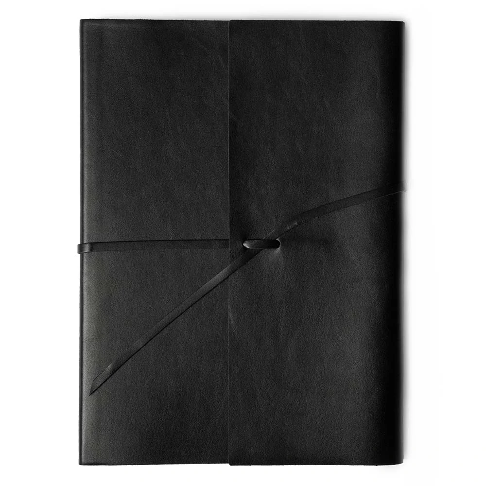 Leder Notizbuch A4 mit Band Schwarz