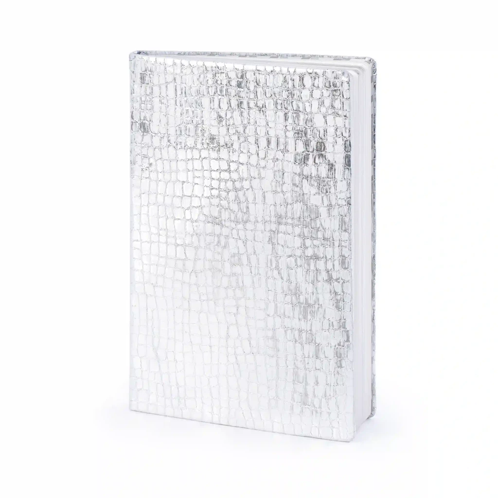Der flexible Einband aus italienischem Rindsleder wird in der hauseigenen Manufaktur von Hand gefertigt. Im Inneren liegt Feinstpapier mit 100 g/m² in einem leichten Cremeton, bezogen aus einer deutschen Papiermühle, mit hervorragenden Schreibeigenschaften für Füllfederhalter, Tintenroller und Kugelschreiber. Die Fadenheftung sichert die Langlebigkeit des Buchblocks. Vor- und Nachsatzseiten sind im Handsiebdruck mit dem charakteristischen Bethge „Square"-Muster veredelt, der Seitenschnitt in Gold, Silber oder Champagner setzt den letzten Akzent. Zwei Lesebändchen und ein Kapitalband runden das Stück ab.