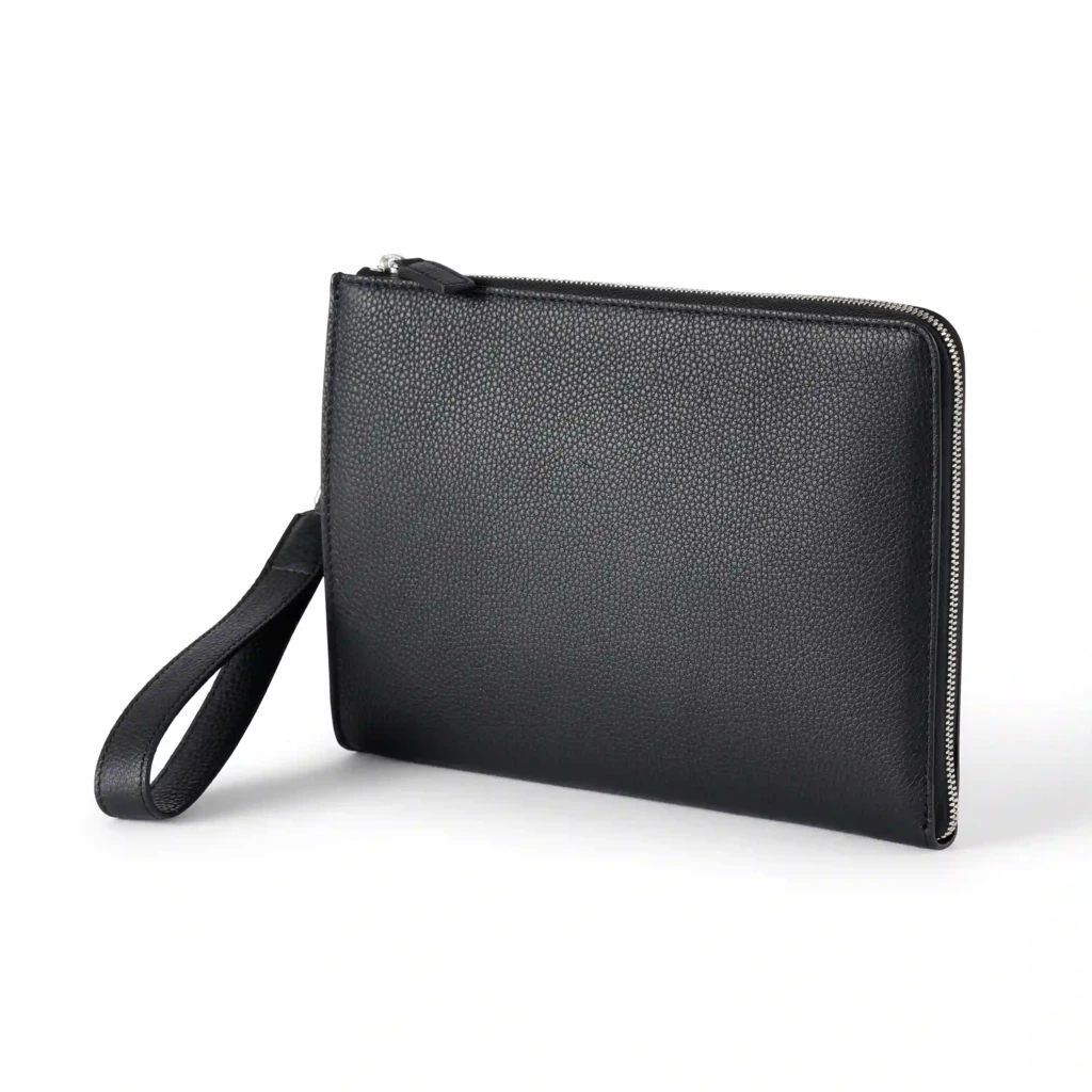 Dieser Pouch entscheidet sich gegen Überfluss. Er ist für diejenige gemacht, die weiß, was sie braucht: ein Stück, das Dokumente, Notizbuch oder Tablet ebenso souverän aufnimmt wie Kosmetik auf Reisen, das als Clutch am Abend funktioniert und im Rucksack Ordnung schafft, ohne Platz zu beanspruchen. Das flache Format von 24 × 2 × 16 cm ist kein Kompromiss, sondern eine Entscheidung für Präzision.