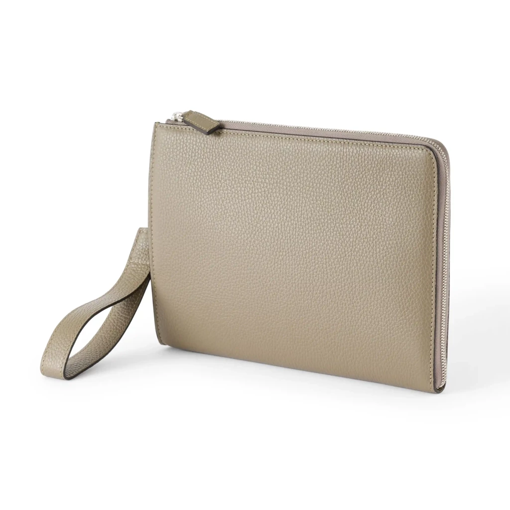 Dieser Pouch entscheidet sich gegen Überfluss. Er ist für diejenige gemacht, die weiß, was sie braucht: ein Stück, das Dokumente, Notizbuch oder Tablet ebenso souverän aufnimmt wie Kosmetik auf Reisen, das als Clutch am Abend funktioniert und im Rucksack Ordnung schafft, ohne Platz zu beanspruchen. Das flache Format von 24 × 2 × 16 cm ist kein Kompromiss, sondern eine Entscheidung für Präzision.
