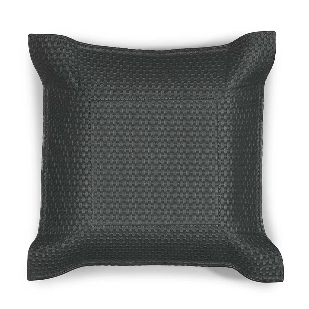 Dieser hochwertige Taschenleerer aus Leder in Flecht-Optik dient als zeitlose und stilvolle Ablagefläche für Schlüssel, Schmuck, Accessoires oder andere Kleinigkeiten. Ganz gemäß dem Vorbild einer Vide-Poche (Französisch: „leere Tasche“), einem in stilvollen Haushalten von Paris bis Berlin etablierten Interieur-Accessoire, bewahrt er den Tascheninhalt auf, bis dieser wieder zum Einsatz kommt. Die Lederablage wird nach unseren Vorgaben und in traditioneller Handarbeit in einer kleinen Manufaktur für Lederwaren in Italien gefertigt – mit handwerklichem Geschick und dem Sinn für das beste Material. Der Rand des Accessoiretrays kann dank einer in das Leder eingearbeiteten, dünnen Bleiplatte nach Belieben aufgestellt, formschön drapiert oder flach ausgebreitet werden. Für einen besonderen Kontrast sorgen die farblich abgesetzten Kanten. Das Format beträgt im flachen Zustand 20,0 x 20,0 cm, der stabile Boden im Inneren hat ein Format von 10,0 x 10,0 cm.