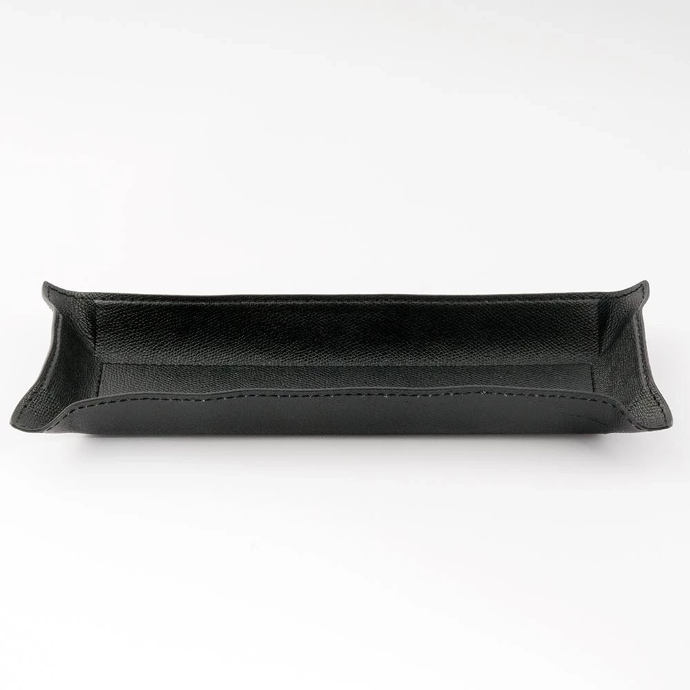 Dieser hochwertige Taschenleerer aus Leder dient als zeitlose und stilvolle Ablagefläche für Schlüssel, Schmuck, Accessoires oder andere Kleinigkeiten. Ganz gemäß dem Vorbild einer Vide-Poche (Französisch: „leere Tasche“), einem in stilvollen Haushalten von Paris bis Berlin etablierten Interieur-Accessoire, bewahrt er den Tascheninhalt auf, bis dieser wieder zum Einsatz kommt. Die Lederablage wird nach unseren Vorgaben und in traditioneller Handarbeit in einer kleinen Manufaktur für Lederwaren in Italien gefertigt – mit handwerklichem Geschick und dem Sinn für das beste Material. Der Rand des Accessoiretrays kann dank einer in das Leder eingearbeiteten, dünnen Bleiplatte nach Belieben aufgestellt, formschön drapiert oder flach ausgebreitet werden. Für einen besonderen Kontrast sorgen die farblich abgesetzten Kanten. Das Format beträgt im flachen Zustand 32,0 x 13,0 cm, der stabile Boden im Inneren hat ein Format von 24,0 x 5,0 cm.
