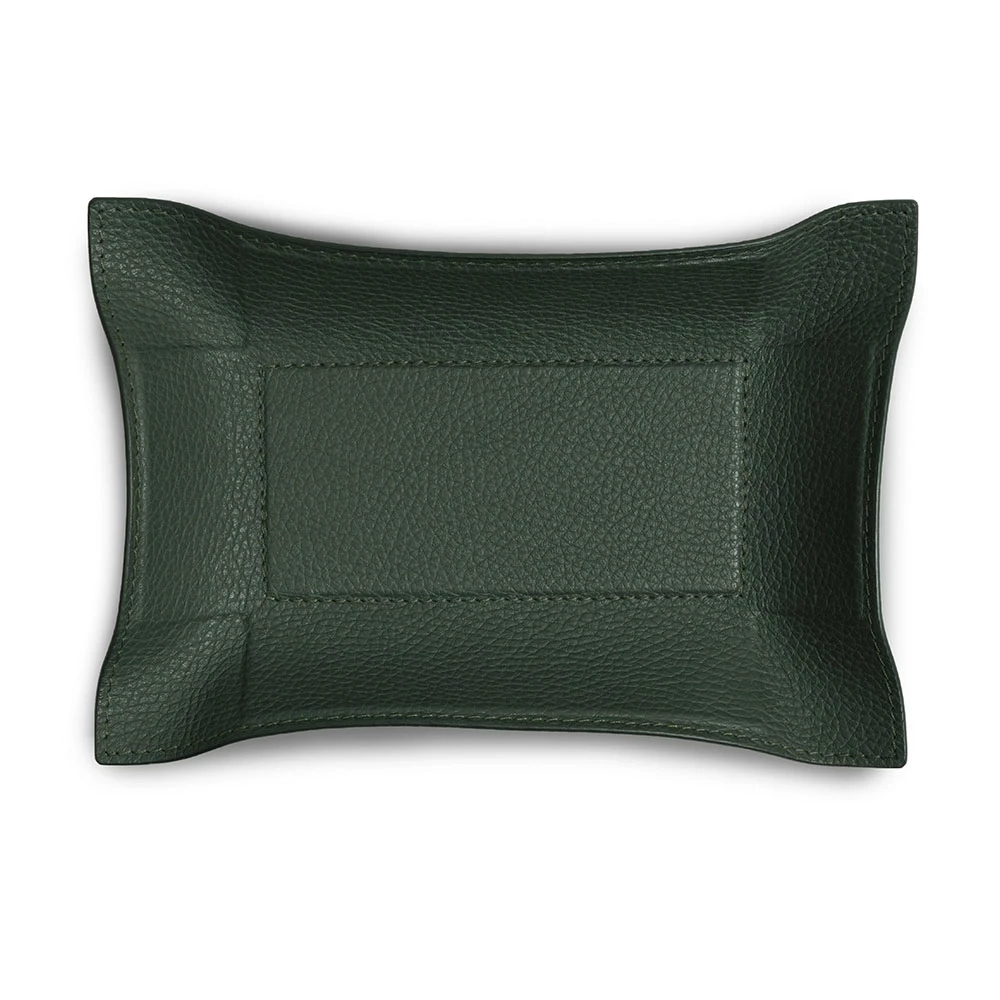 Dieser hochwertige Taschenleerer aus geprägtem Kalbsleder mit Hirsch-Optik dient als zeitlose und stilvolle Ablagefläche für Schlüssel, Schmuck, Accessoires oder andere Kleinigkeiten. Ganz gemäß dem Vorbild einer Vide-Poche (Französisch: „leere Tasche“), einem in stilvollen Haushalten von Paris bis Berlin etablierten Interieur-Accessoire, bewahrt er den Tascheninhalt auf, bis dieser wieder zum Einsatz kommt. Die Lederablage wird nach unseren Vorgaben und in traditioneller Handarbeit in einer kleinen Manufaktur für Lederwaren in Italien gefertigt – mit handwerklichem Geschick und dem Sinn für das beste Material. Der Rand des Accessoiretrays kann dank einer in das Leder eingearbeiteten, dünnen Bleiplatte nach Belieben aufgestellt, formschön drapiert oder flach ausgebreitet werden. Für einen besonderen Kontrast sorgen die farblich abgesetzten Kanten. Das Format beträgt im flachen Zustand 21,0 x 15,0 cm, der stabile Boden im Inneren hat ein Format von 13,0 x 6,0 cm.