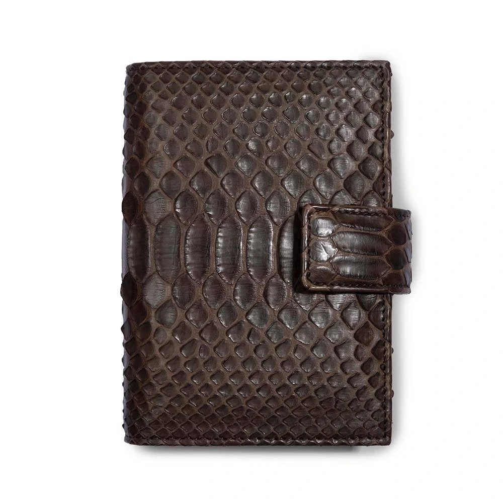 Der Pocket Planer dient als vielseitige und umfangreiche Organisationshilfe und überzeugt in dieser Luxus-Variante durch einen exklusiven Einband aus echtem Pythonleder. Das Schlangenleder besitzt eine filigrane Schuppenanordnung und ist besonders langlebig und widerstandsfähig. Da jede Pythonhaut eine individuelle Struktur und Zeichnung besitzt, handelt es sich bei jedem Exemplar um ein Unikat voller Stil und Eleganz. Innen ist der Planer mit gleichfarbigem Glattleder versehen. Hier befinden sich insgesamt drei größere Einschubfächer für Notizzettel und Belege, drei kleine Fächer für Visiten- oder Kreditkarten sowie eine integrierte Stiftelasche für Schreibgeräte mittleren Durchmessers (ca. 1,0 cm). Sicher verschlossen wird der Organizer durch eine Lasche mit Druckknopf. Die Fertigung erfolgt in traditioneller Handarbeit in einer italienischen Lederwaren-Manufaktur.