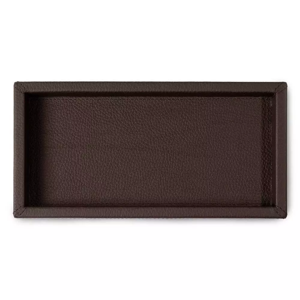 Das englische Wort "Tray" bezeichnet hierzulande ein Tablett zur Ablage von Accessoires, Schreibgeräten und mehr. Gefertigt aus Kalbsleder mit einer Prägung in Hirsch-Optik, wird das hochwertige Ledertablett für besondere Arrangements genutzt oder schlichtweg als Taschenentleerer zur Ablage von Schlüssel, Portemonnaie und anderen Kleinigkeiten. Ton in Ton gehaltene Ziernähte runden das handgefertigte Ledertray ab und unterstreichen das puristische Design.