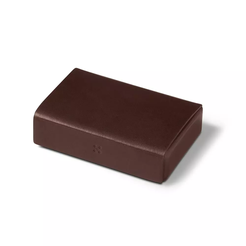Diese Schachtel von robuster Schönheit hat das Potential, zum treuen Gefährten zu werden. Die äußere Hülle ist aus einem Stück Sattelleder mit einer Dicke vom etwa 2,5 mm gefertigt, das Innere ist mit einem weichen Futterleder ausgekleidet. Die offenen Kanten sind nicht genäht, sondern mit Lederklebstoff fest verbunden – nur so ließ sich das reduzierte Erscheinungsbild erzielen. Die Klappe wird durch im Leder verborgene Magneten gehalten. Das ETWEE Short kann man in einer Tasche überall dabei haben, um Visitenkarten, Manschettenknöpfe oder Ohrringe unterzubringen. Es dient auch als Brieftasche für Kreditkarten, Papiergeld, Wechselgeld oder Quittungen. Das Leder zeigt die Geschichte des Rindes und dazu gehören auch Falten am Hals und die eine oder andere kleine Schramme. Jedes ETWEE ist einzigartig. Unterstrichen wird dies durch die unterschiedlichen Farbnuancen jedes Einzelstücks, die dank des bewussten Verzichtes auf deckende Farbe entstehen.
