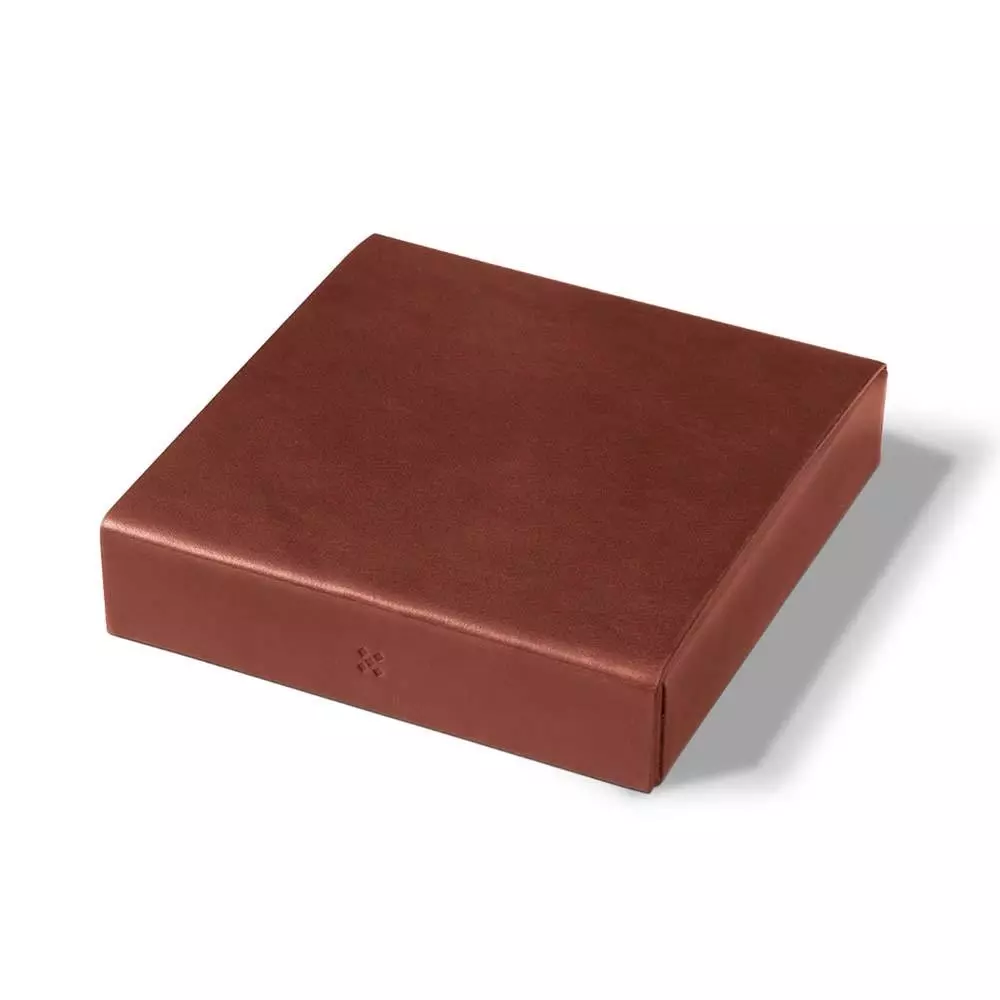 Diese Schachtel von robuster Schönheit hat das Potential, zum treuen Gefährten zu werden. Die äußere Hülle ist aus einem Stück Sattelleder mit einer Dicke vom etwa 2,5 mm gefertigt, das Innere ist mit einem weichen Futterleder ausgekleidet. Die offenen Kanten sind nicht genäht, sondern mit Lederklebstoff fest verbunden – nur so ließ sich das reduzierte Erscheinungsbild erzielen. Die Klappe wird durch im Leder verborgene Magneten gehalten. Das ETWEE Square ist ein Transporteur für alles Mögliche. Groß genug, um Ladekabel, Kopfhörer oder Akkus unterzubringen. Aber nicht zu groß, sodass man es in einer Tasche überall dabeihaben kann. Oder es dient als bildschöner Stauraum auf dem Schreibtisch oder der Kommode. Das Leder zeigt die Geschichte des Rindes und dazu gehören auch Falten am Hals und die eine oder andere kleine Schramme. Jedes ETWEE ist einzigartig. Unterstrichen wird dies durch die unterschiedlichen Farbnuancen jedes Einzelstücks, die dank des bewussten Verzichtes auf deckende Farbe entstehen.