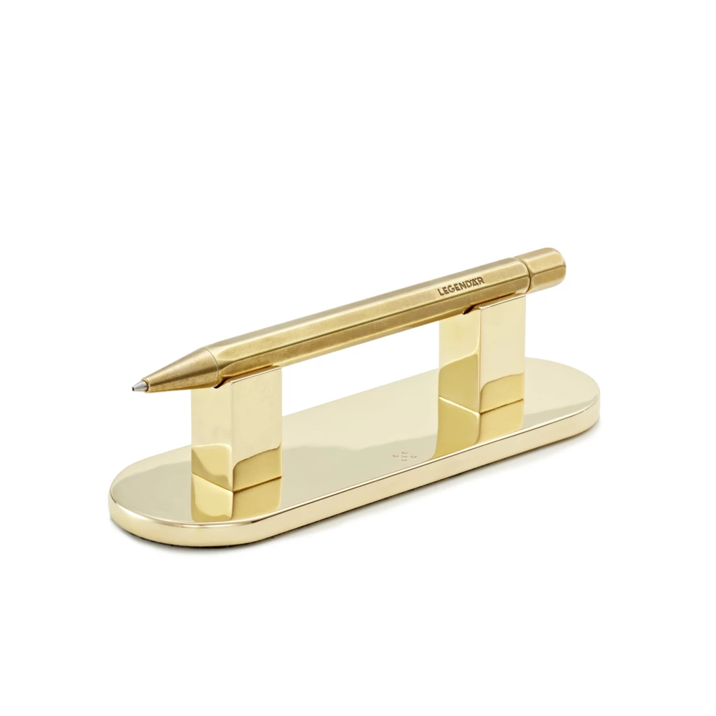 Der Messing Pen Stand BRYDGE ist ein echter Hingucker und bietet Ihrem Schreibgerät eine ideale Ablagefläche. Die glatte Oberfläche und klaren Linien verleihen diesem Stück ein zeitloses Design, das sowohl in klassischen als auch modernen Büroumgebungen hervorragend zur Geltung kommt. Ein massives Stück Messing, im Stück gegegossen und anschließend entgratet und poliert. Echtes craftmanship.