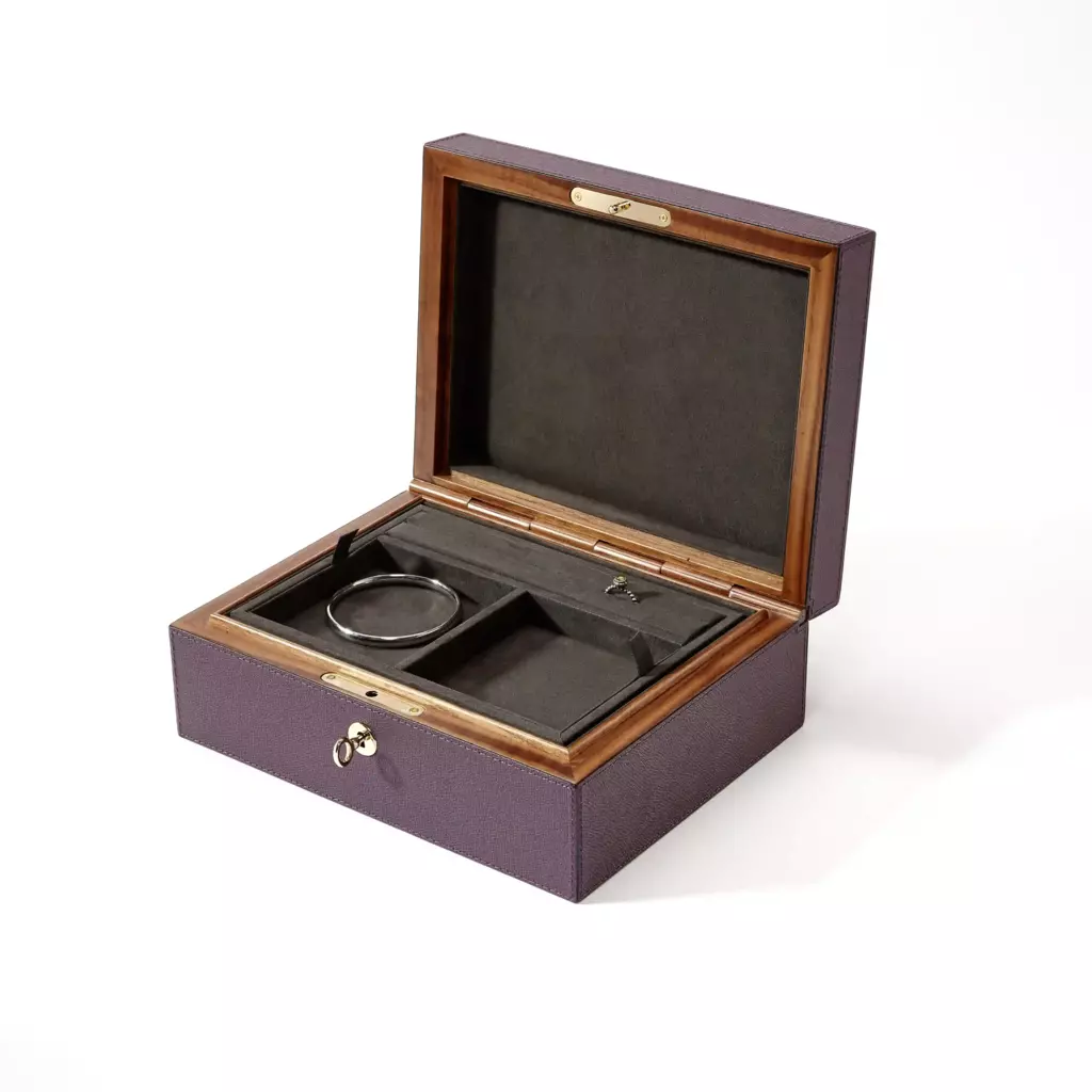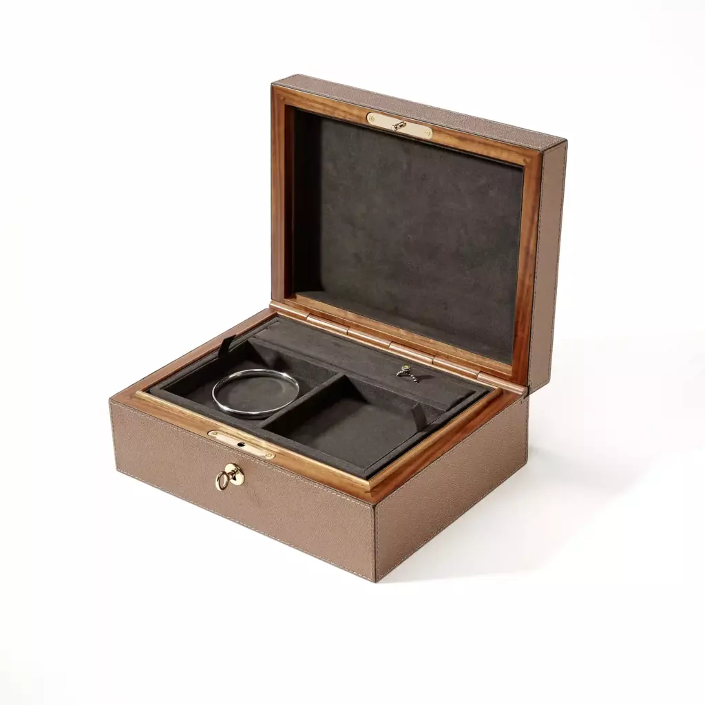 Manschettenknopf-Box, Walnussholz/Leder Dunkelgrau