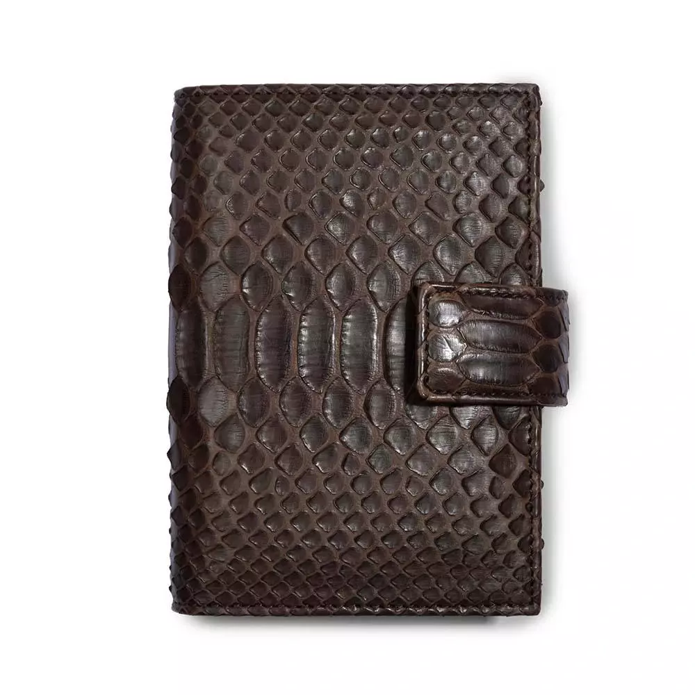 Der Pocket Planer dient als vielseitige und umfangreiche Organisationshilfe und überzeugt in dieser Luxus-Variante durch einen exklusiven Einband aus echtem Pythonleder. Das Schlangenleder besitzt eine filigrane Schuppenanordnung und ist besonders langlebig und widerstandsfähig. Da jede Pythonhaut eine individuelle Struktur und Zeichnung besitzt, handelt es sich bei jedem Exemplar um ein Unikat voller Stil und Eleganz. Innen ist der Planer mit gleichfarbigem Glattleder versehen. Hier befinden sich insgesamt drei größere Einschubfächer für Notizzettel und Belege, drei kleine Fächer für Visiten- oder Kreditkarten sowie eine integrierte Stiftelasche für Schreibgeräte mittleren Durchmessers (ca. 1,0 cm). Sicher verschlossen wird der Organizer durch eine Lasche mit Druckknopf. Die Fertigung erfolgt in traditioneller Handarbeit in einer italienischen Lederwaren-Manufaktur.