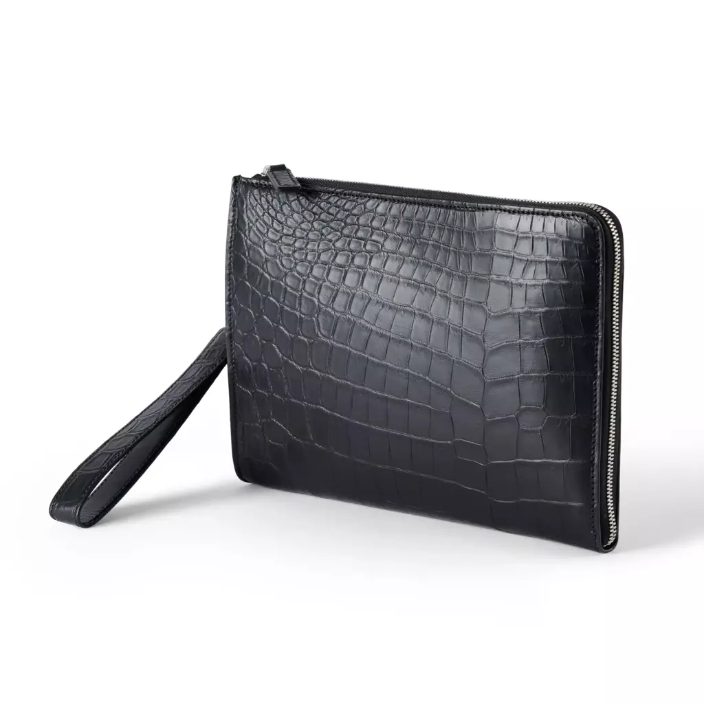 Pouch mit Zip Adri, Alligatorleder, Schwarz