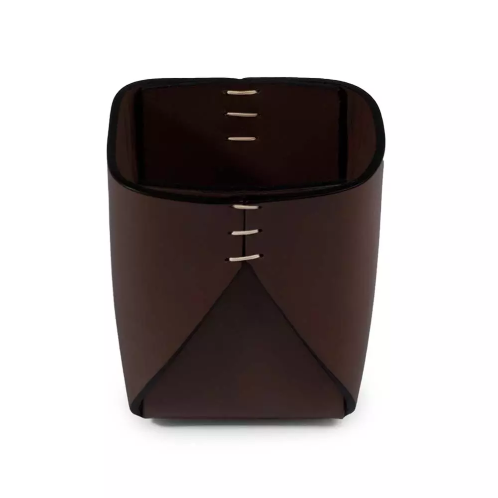 Quadratischer Stiftebecher Stitch, Leder, Dunkelbraun