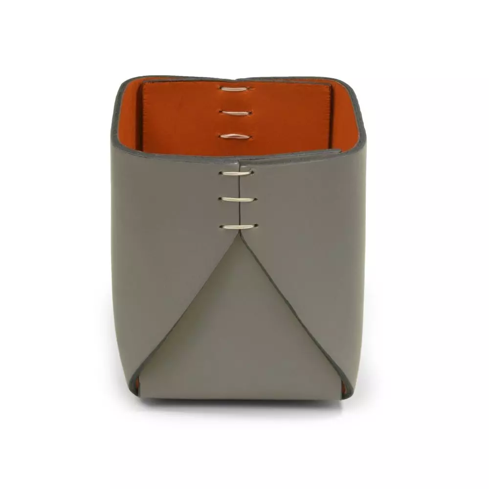 Quadratischer Stiftebecher Stitch, Leder, Grau/Orange