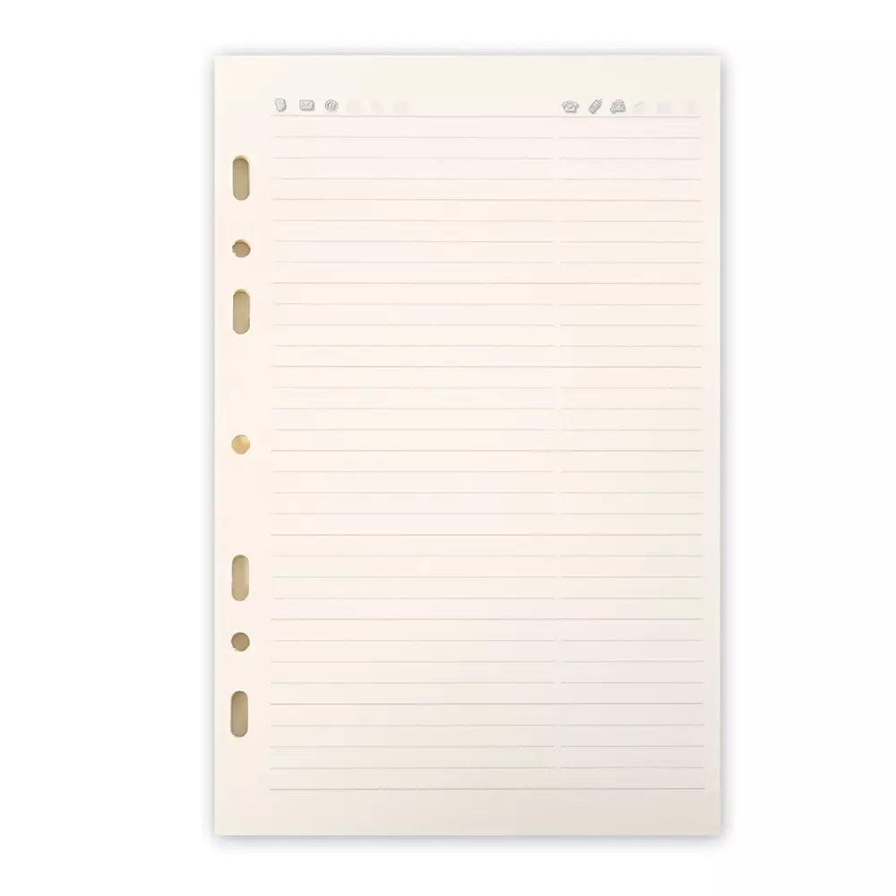 Dieses Adress- und Telefonbuch-Refill passt in alle unsere System Planer und bietet auf 50 Blatt mit vorgedruckten Linien in zwei Spalten ausreichend Platz für die wichtigsten Daten Ihrer Kontakte. Name, Anschrift, Mailadresse, Telefon- und Mobilnummer können dank der kleinen vorgedruckten Icons anschaulich organisiert werden. Das cremefarbene Papier passt zu den anderen Planer-Refills aus unserem Sortiment und lässt sich dank der praktischen 7-fach-Lochung einfach austauschen. Das Refill ist zudem mit dem Filofax-System kompatibel. Format: 14,0 x 21,5 mm.